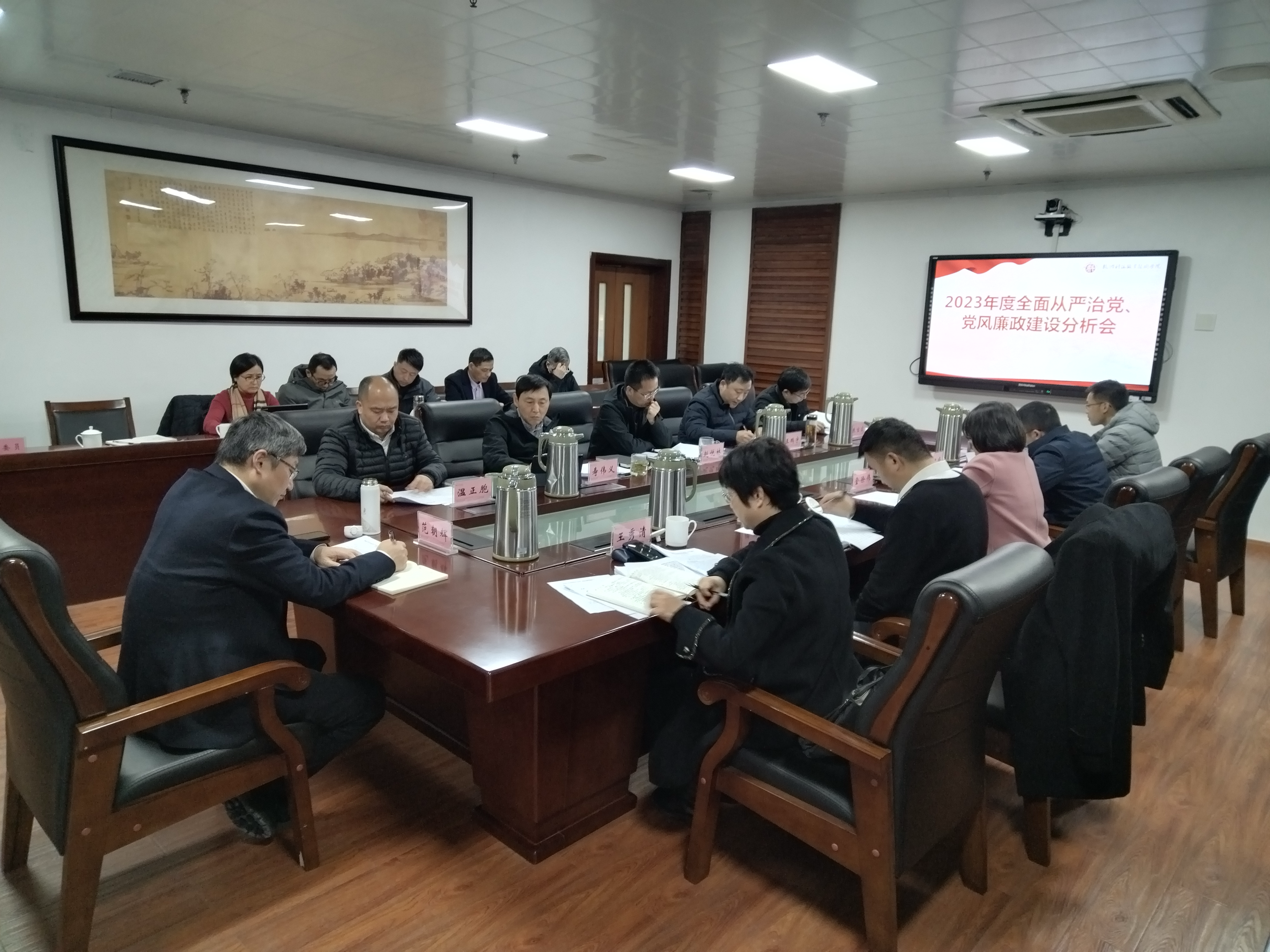 2月21日,校党委召开2023年度全面从严治党、党风廉政建设分析会。校党委书记范朝辉主持会议,杭州市纪委市监委派驻市教育局纪检监察组组长王秀清、副组长陈海军出席会议。校全体党政班子成员参加分析会,校纪委委员列席会议。