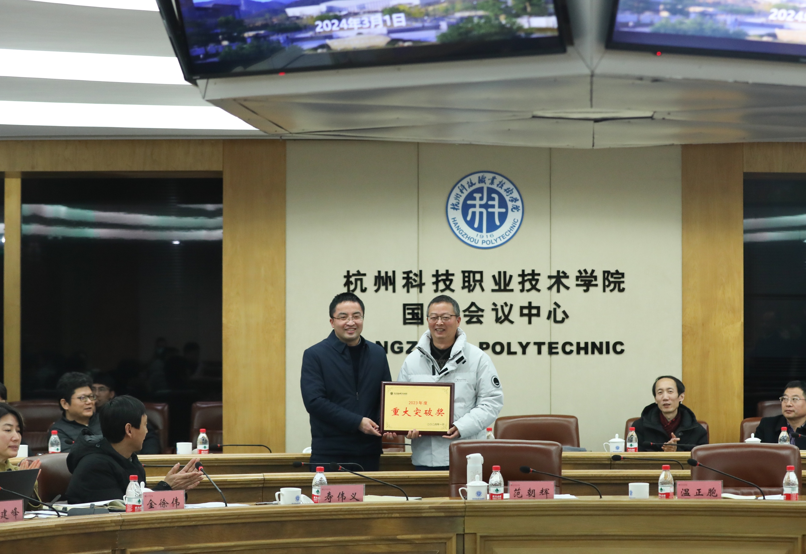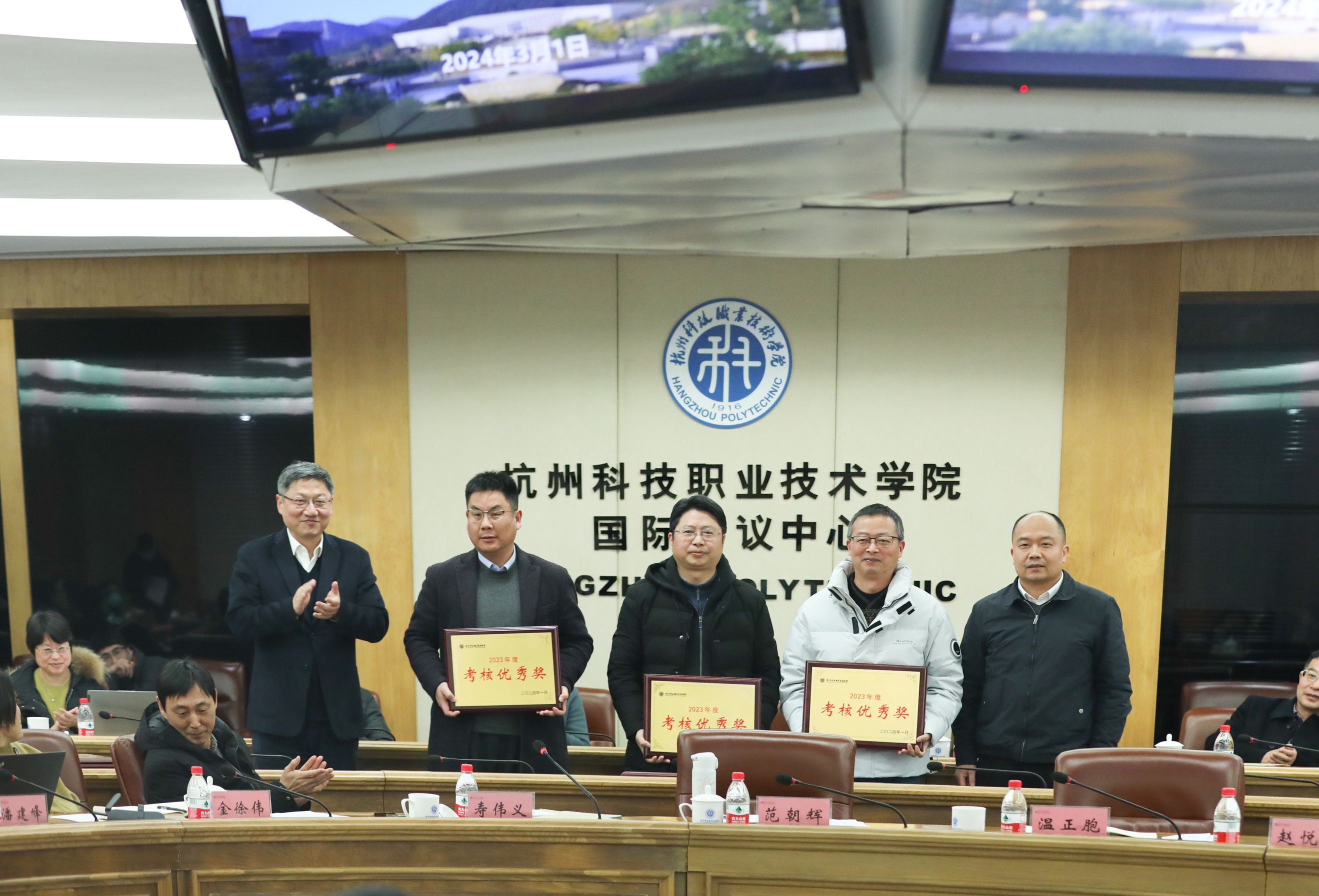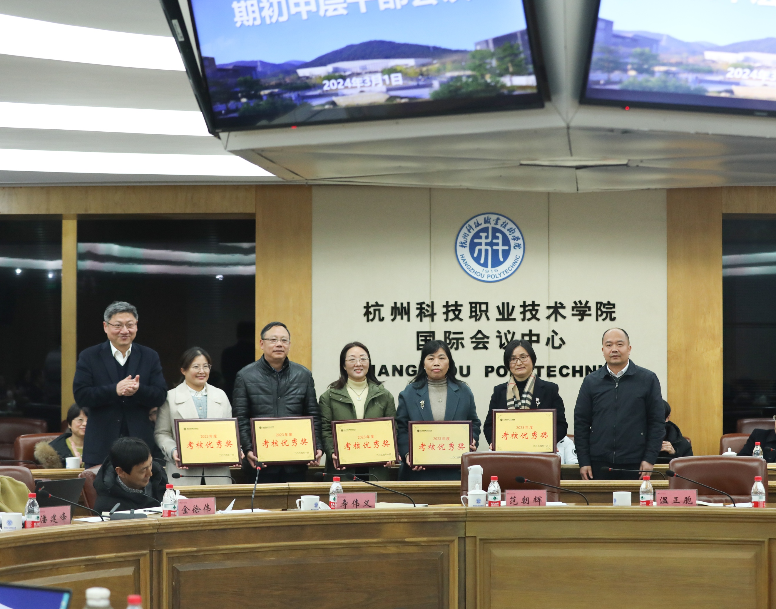 党委副书记寿伟义主持会议,党委委员、纪委书记王鹏宇宣布2023年度校内部门目标责任制考核工作表彰情况。全体校领导先后为2023年度校内部门目标责任制考核获奖部门、学院颁奖,并对2024年学校各项工作作了具体部署与要求。
