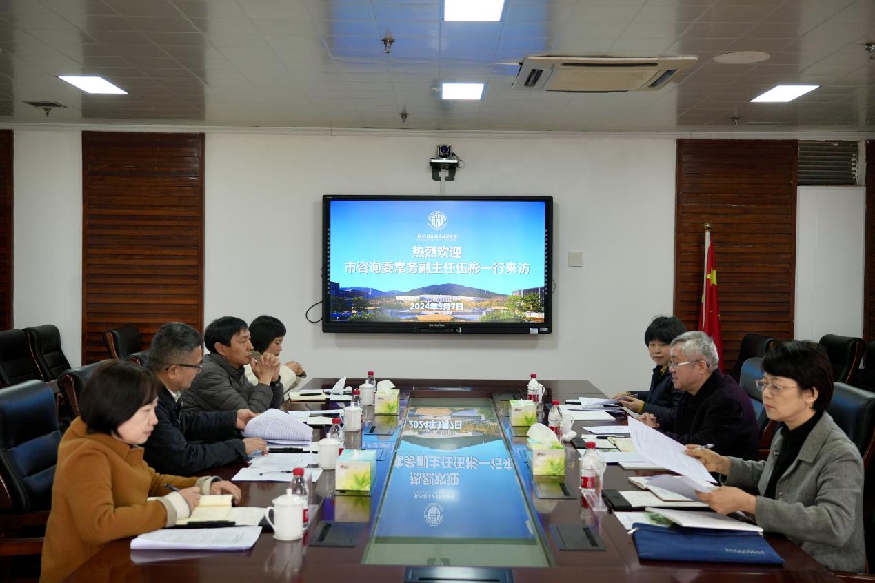 3月7日,杭州市咨询委常务副主任伍彬带队来我校调研指导并召开座谈会。市咨询委委员、原校党委书记谢列卫出席会议,市咨询办主任、市委政研室副主任、市委财经办专职副主任俞伟英,市咨询办副主任张燕,校党委副书记寿伟义参加。