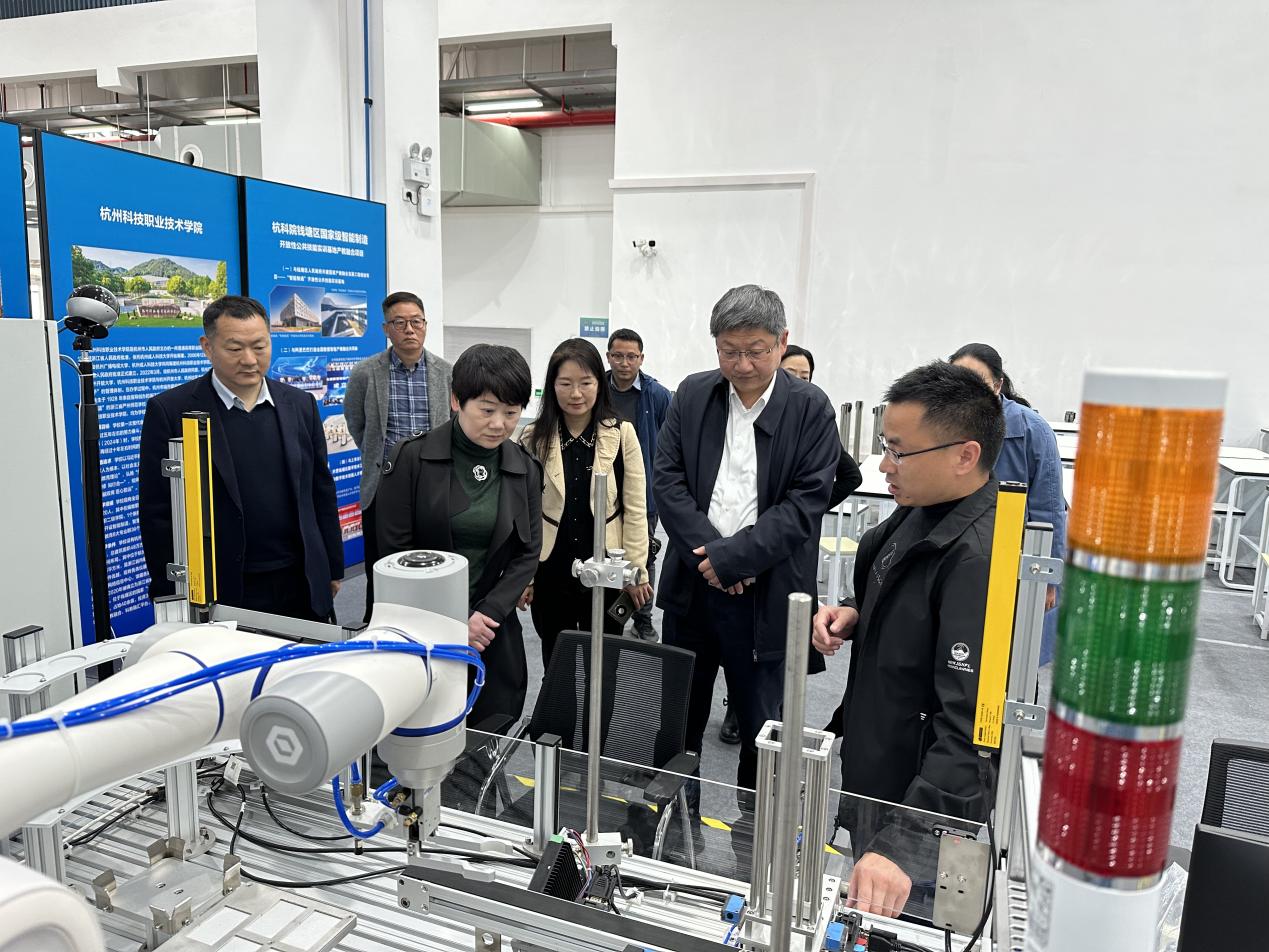 3月22日,杭州市科学技术协会党组书记、主席孙雍容,党组成员、二级巡视员鲁玉安等一行五人到我校大江东校区国家级智能制造开放性公共技能实训基地调研指导。党委书记范朝辉,党委委员、副校长潘建峰出席调研,办公室、科技处(产学合作处)、大江东校区管理办、继续教育学院等相关人员参加。