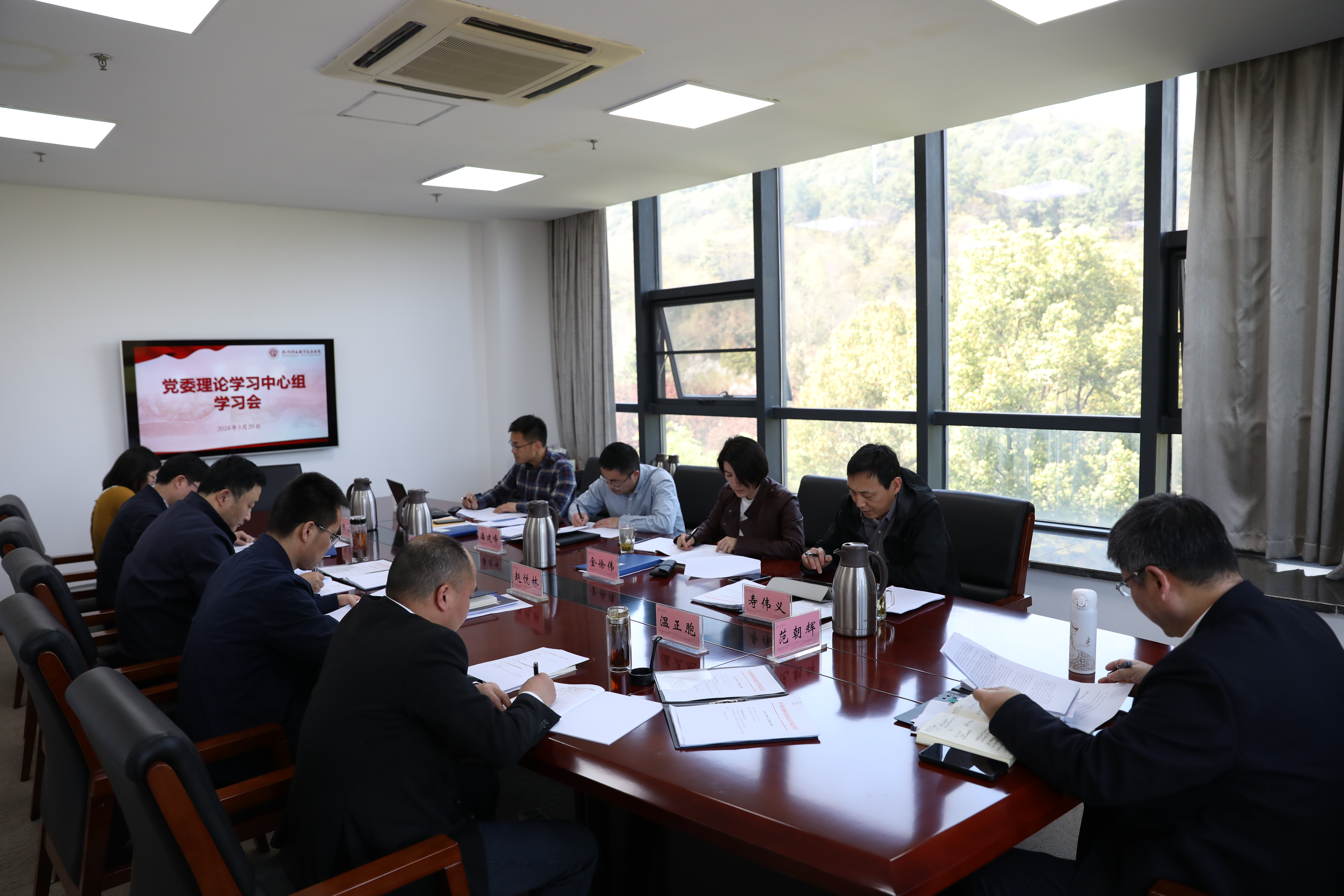 3月29日,校党委理论中心组专题学习习近平总书记考察湖南重要讲话精神和《浙江省优化营商环境条例》。党委书记范朝辉主持学习会,全体理论中心组成员参加并交流发言。
