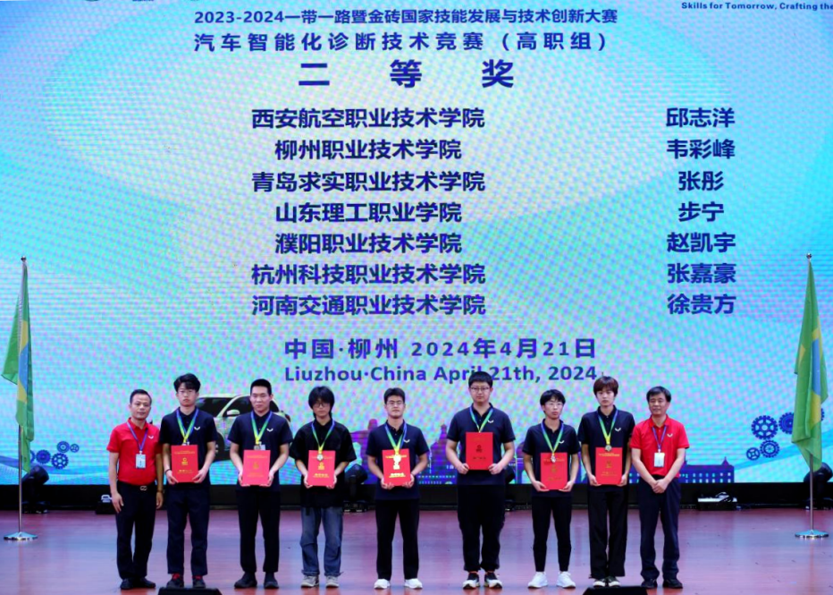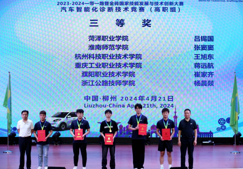 近日,2023-2024一带一路暨金砖国家技能发展与技术创新大赛汽车智能化诊断技术竞赛(高职组)比赛在柳州城市职业学院举行。来自中国、印尼、老挝、越南等国家的38所职业院校的73支队伍报名参赛。我校汽车工程学院张朝山老师指导的张嘉豪同学获得二等奖,骆佳豪老师指导的王旭东同学获得三等奖。