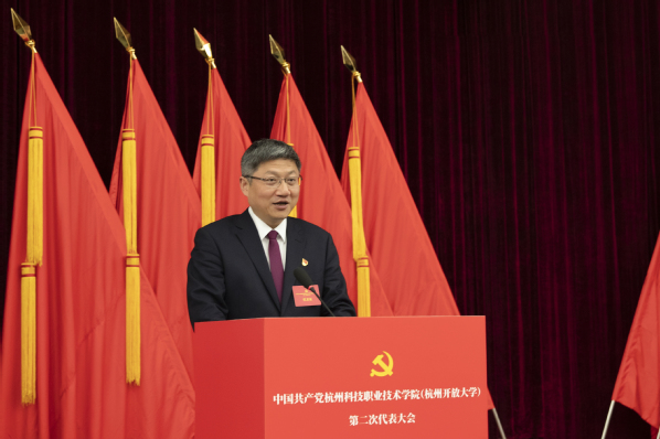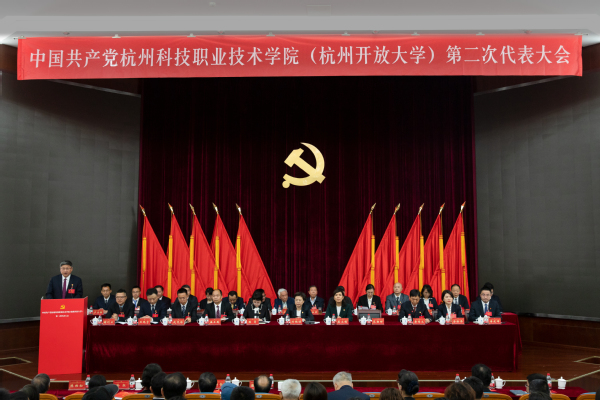 党委书记范朝辉致开幕词,并代表中国共产党杭州科技职业技术学院第一届委员会作题为《以习近平新时代中国特色社会主义思想为指导 为建设全国一流高职院校和开放大学勇开新局赓续奋进》的报告。