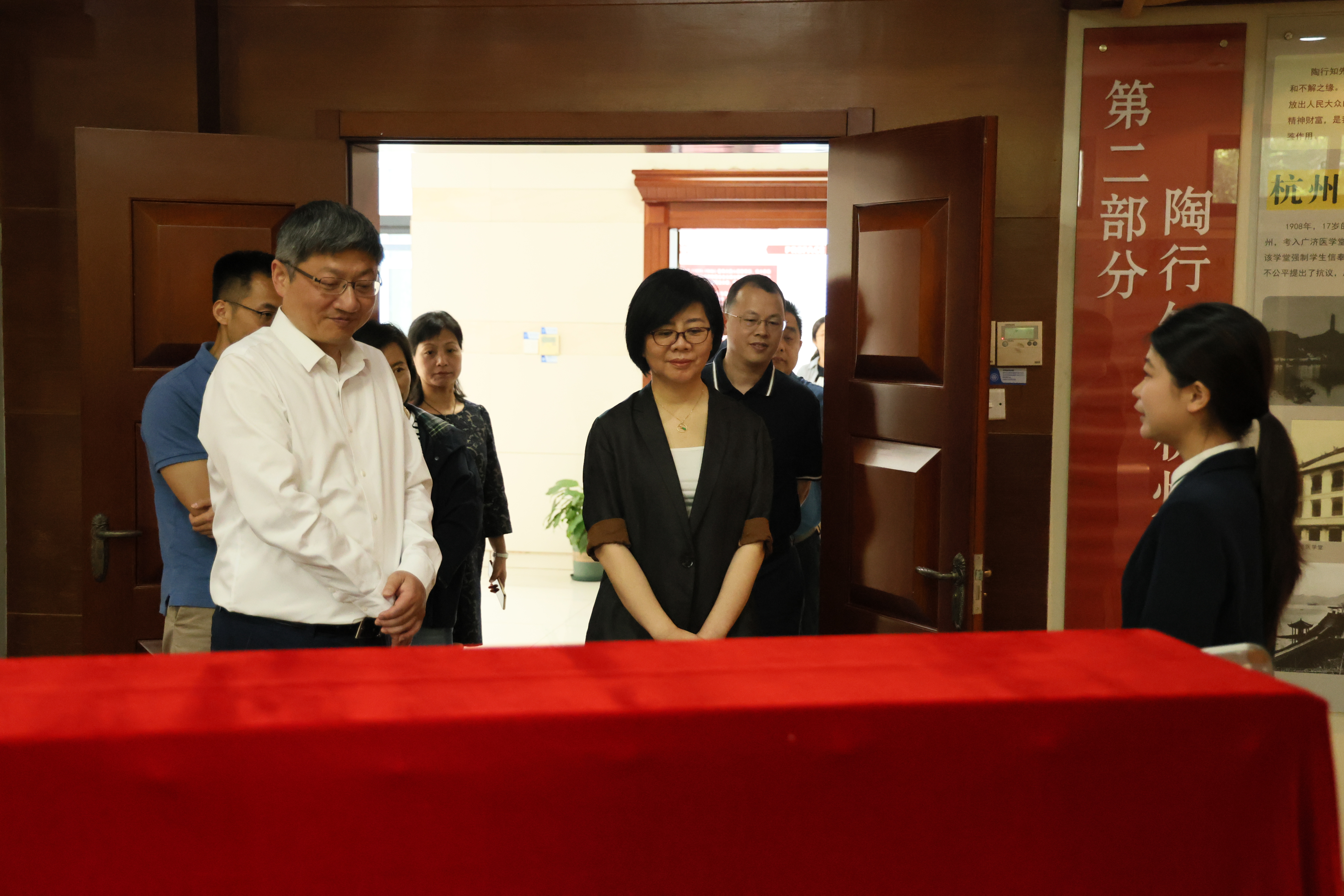 会前,赵一文一行走访参观了校园中轴线文化景观带、杭州陶行知研究馆,深入了解我校办学特色和文化建设情况。