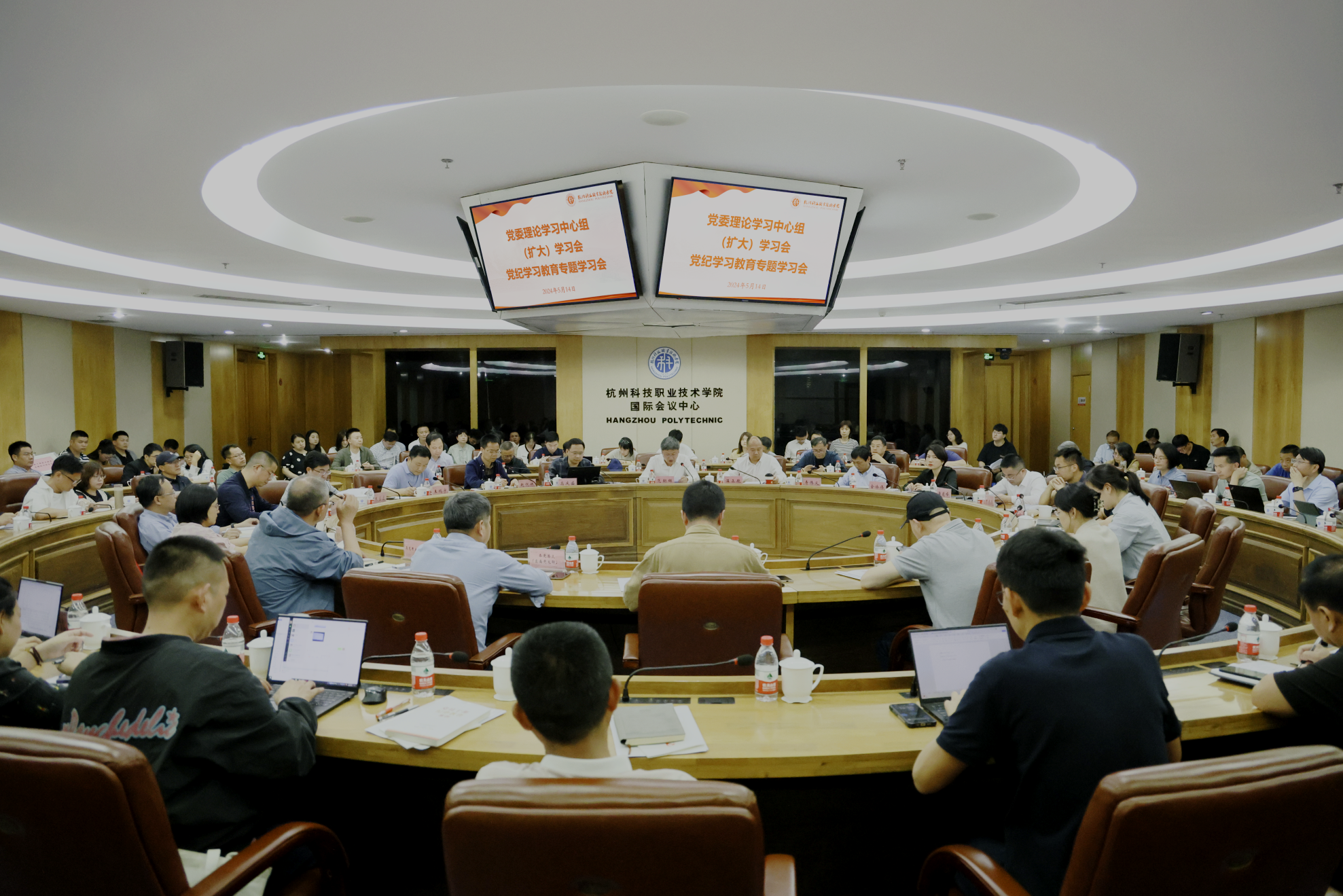 5月14日,我校召开党委理论学习中心组(扩大)学习会暨党纪学习教育专题学习会,深入学习贯彻习近平总书记关于加强党的纪律建设重要讲话精神,集中学习《中国共产党纪律处分条例》。党委书记范朝辉主持会议,校长温正胞等全体党委理论学习中心组成员出席,杭州市纪委市监委第三监督检查室主任、浙江省党纪学习教育“百名骨干讲师团”成员高庆盛作专题辅导报告,全体中层干部、年轻干部能力提升专题培训班学员参加。