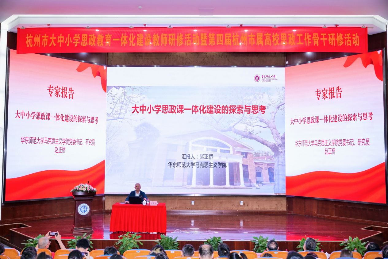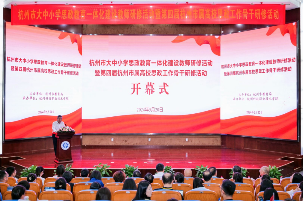 5月20日上午,由杭州市教育局主办,杭州科技职业技术学院承办的杭州市大中小学思政教育一体化建设教师研修活动暨第四届杭州市属高校思政工作骨干研修活动开幕,来自全市87所大中小学校的百余名思政课教师将全程参加为期三天的研修活动。