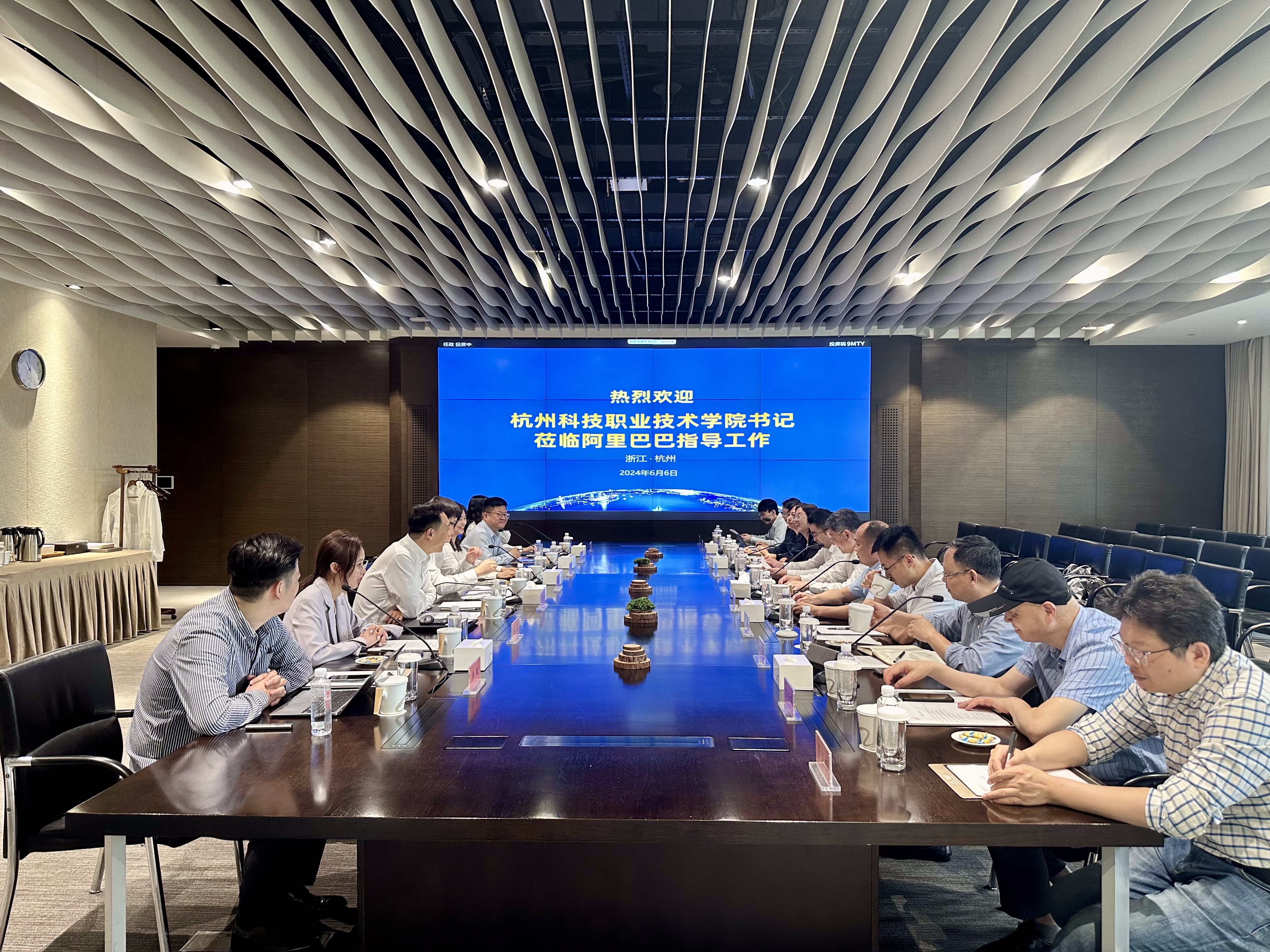 6月6日,党委书记范朝辉、校长温正胞带队赴阿里巴巴集团走访调研并召开座谈会,进一步深化产教融合、校企合作,共同推进阿里巴巴橙点数字经济产业学院持续高质量发展。阿里巴巴公益部副总裁、阿里巴巴集团助力共富工作小组秘书长王威,阿里巴巴集团助力共富工作小组办公室主任陆昕、办公室副主任张雷,阿里巴巴数字乡村人才可持续发展中心副主任王辉,杭科院党委委员、副校长潘建峰出席会议。阿里巴巴橙点同学职教公益项目小组成员,学校相关职能部门、二级学院负责人参加。