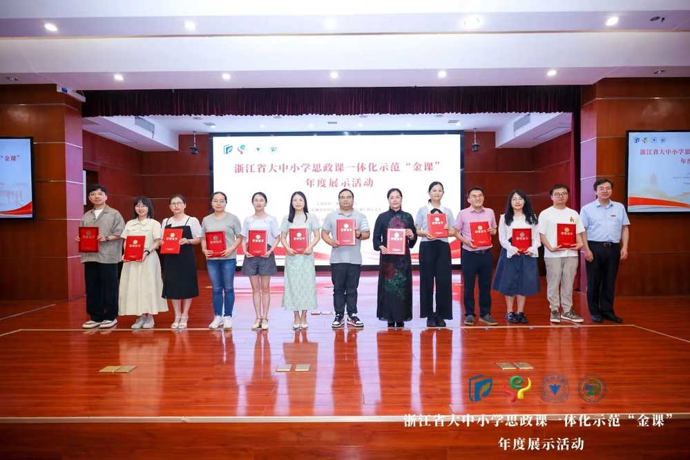 6月19日,由浙江省教育厅主办的浙江省大中小学思政课一体化示范“金课”展示活动在浙大城市学院举行。由我校马克思主义学院钟婷婷老师领衔,与浙江省严州中学(新安江校区)、建德市乾潭初级中学、建德市明珠小学思政教师共同打造的《中华文化》金课荣获一等奖,是杭州市4支代表队中唯一一支高职马院领衔获奖的队伍。