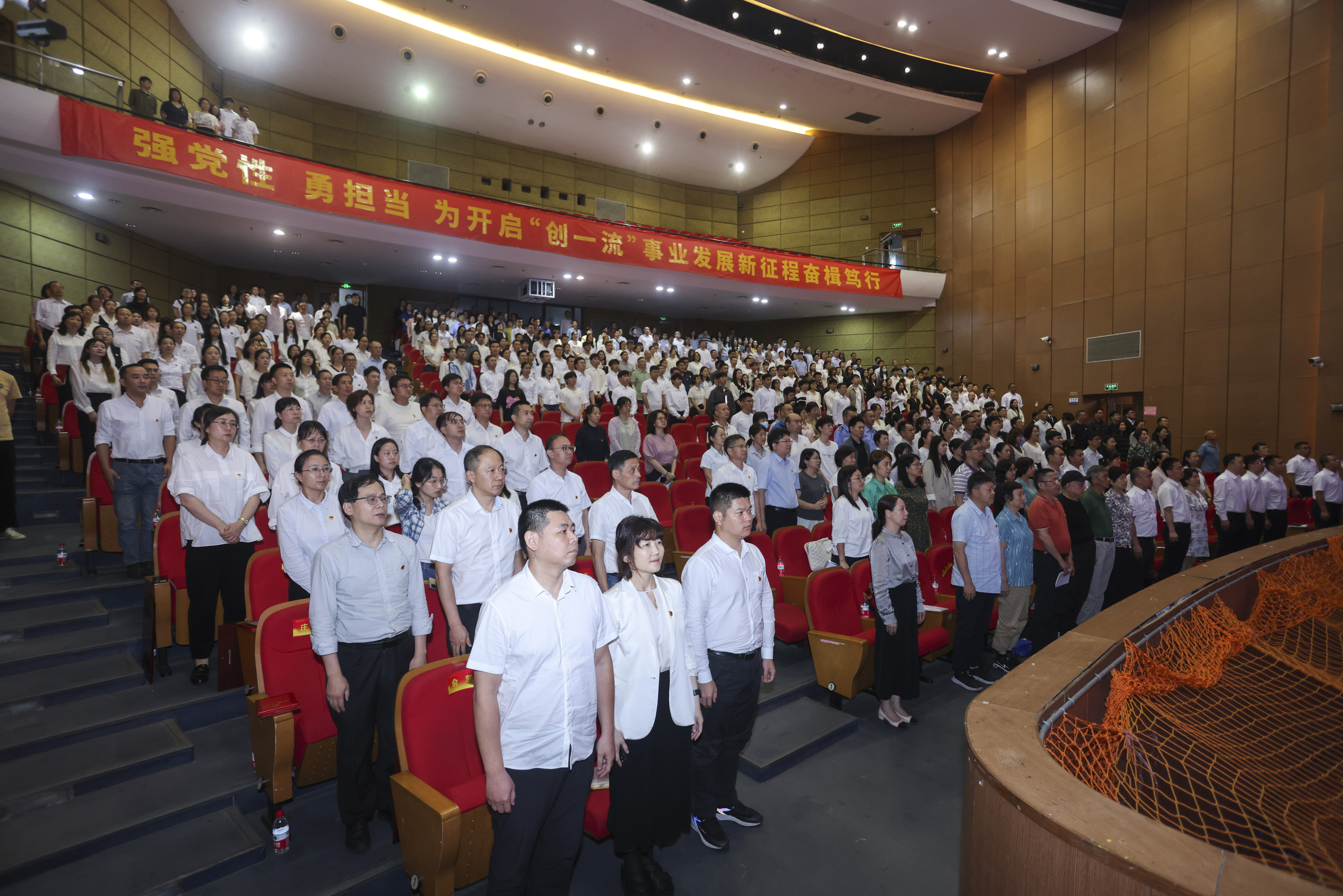 6月28日,杭州科技职业技术学院隆重举行庆祝中国共产党成立103周年暨“七一”表彰大会,庆祝中国共产党103周年诞辰,表彰优秀先进典型,宣传交流在党员先锋模范作用发挥和基层党组织党建品牌建设等方面的典型经验,进一步增强党组织的凝聚力和战斗力,激励广大党员在学校“创一流 竞百强”事业发展中贡献更大力量。党委书记范朝辉讲授“筑牢纪律之基 砥砺前行之路 以党纪学习教育开展促进学校高质量发展”的党纪学习教育专题党课,党委副书记寿伟义主持大会,全体校领导出席,全体教职工党员,学生党员代表,离退休党总支、党支部书记代表,“光荣在党50年”党员代表参加。应邀列席大会的还有学校非中共党员中层干部、相关民主党派负责人、无党派人士代表。