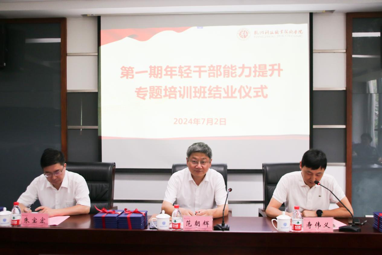 7月2日,第一期年轻干部素质能力提升专题培训班结业仪式在高桥校区举行。党委书记范朝辉出席仪式并讲话,党委副书记寿伟义主持,党委委员、组织部部长朱宝宏和全体学员参加。