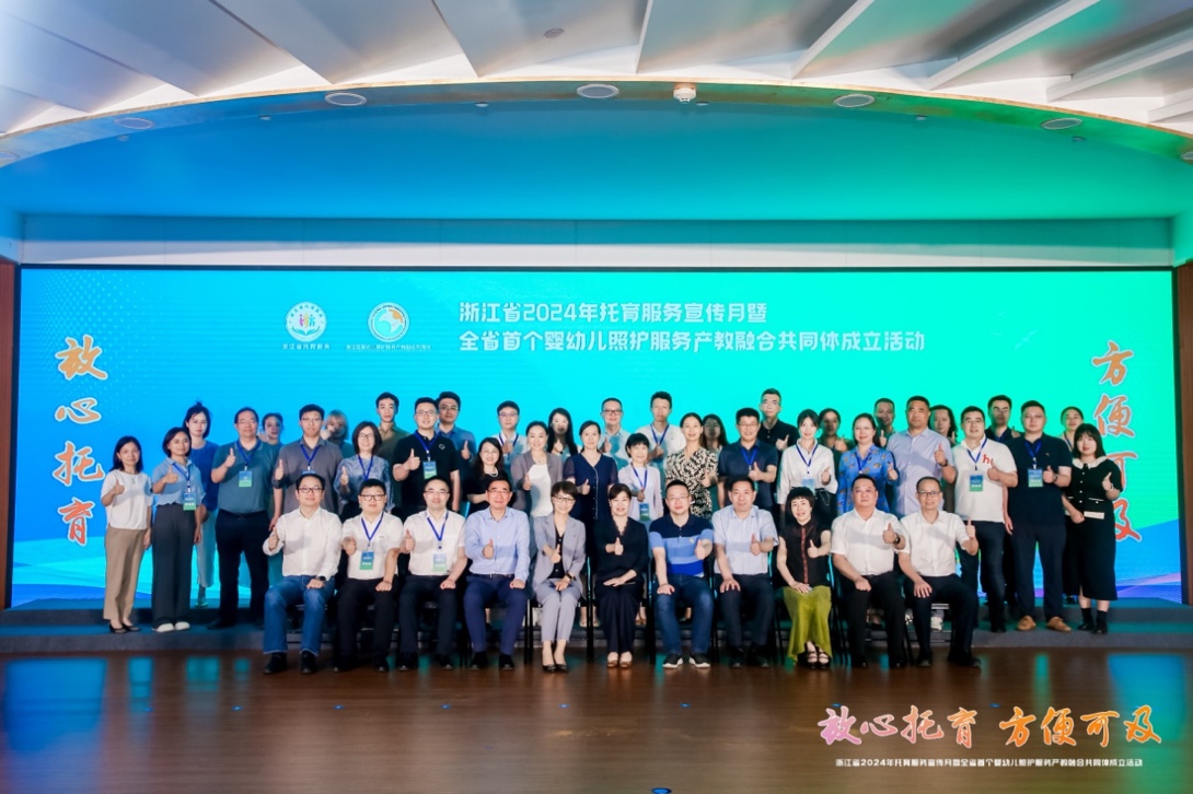 7月8日,浙江省2024年托育服务宣传月暨全省首个婴幼儿照护服务产教融合共同体成立活动在浙江大学医学院附属儿童医院滨江院区举行。杭州科技职业技术学院、浙江大学医学院附属儿童医院、浙江大华技术股份有限公司等理事长单位牵头,携手贝因美股份有限公司、浙江大学滨江研究院等28家院校、企业、托育机构共同成立全省首个婴幼儿照护服务产教融合共同体。杭科院党委委员、副校长潘建峰,学前教育学院负责人及师生代表等参加活动。