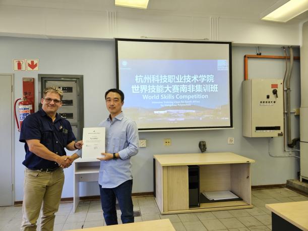 自“中南‘丝路学院’”成立以来,学校采用“政校企合作”模式,结合南非产业数字化转型升级的战略需求,依托智能制造、智慧建造、物联网技术、新零售管理等优势特色专业群,开展浙江凯达机床股份有限公司等“走出去”企业员工技能提升培训、南非世界技能大赛选手技能指导、职业院校师生培训和青年就业技能培训200余人,培训总量突破1万人天。在新一轮合作中,学校承担南非高教部30名高校教师培训项目,与南非高教部技能资格认证中心共建世界技能大赛数控培训中心,联合南非中资企业共同实施“洋学徒”本土化培养和汉语培训,开发并输出教学标准、课程标准、双语课程资源、技能实训培训包等。