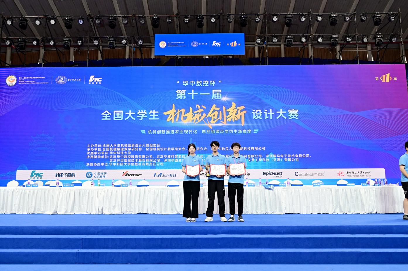 7月16日至17日,第十一届全国大学生机械创新设计大赛决赛在华中科技大学顺利举行。我校智能制造学院选送的3项参赛作品《“精量多能”小型有机辣椒育苗播种机》《祝英蝶》和《妙蛙蛙》(与汽车工程学院共同参赛)荣获全国一等奖,其他作品获得全国二等奖2项、全国三等奖2项。我校大赛一等奖获奖数位列全国职业院校(含职业技术大学)第一,全省本专科高校第二,取得了历史性的突破!