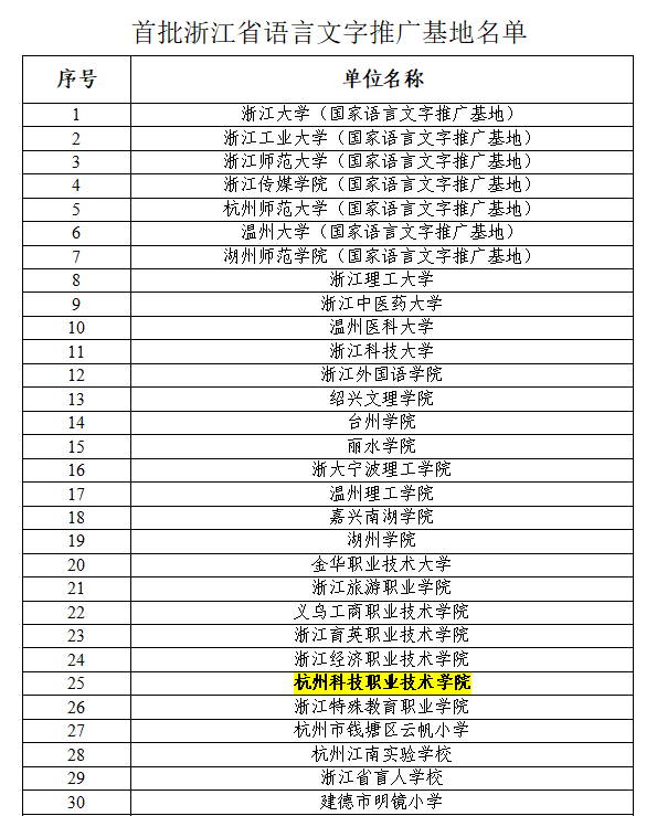 近日,浙江省教育厅发布《浙江省教育厅办公室关于公布首批浙江省语言文字推广基地名单的通知》,全省61家单位入选,我校位列其中,成功获批浙江省语言文字推广基地。