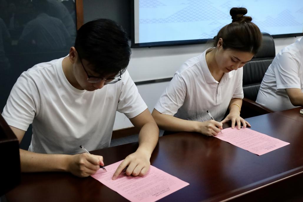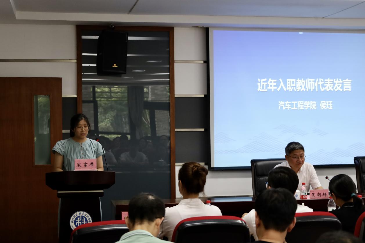 开班仪式上,新教师代表刘旸、孙上桢现场签订《师德师风自律承诺书》,近年入职教师代表、汽车工程学院专业主任侯珏作了交流发言。