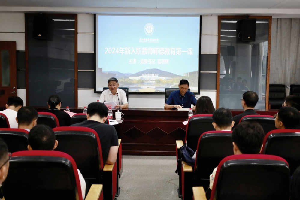党委书记开讲师德教育第一课是我校新入职教师系列培训的重要组成部分。接下来,我校将就师德师风专题教育、教学制度与规范、教学改革与课程思政、科研能力提升及科研规范、教师其他个人能力成长业务等方面开展系列专题培训,进一步增强教师职业素养和综合能力。