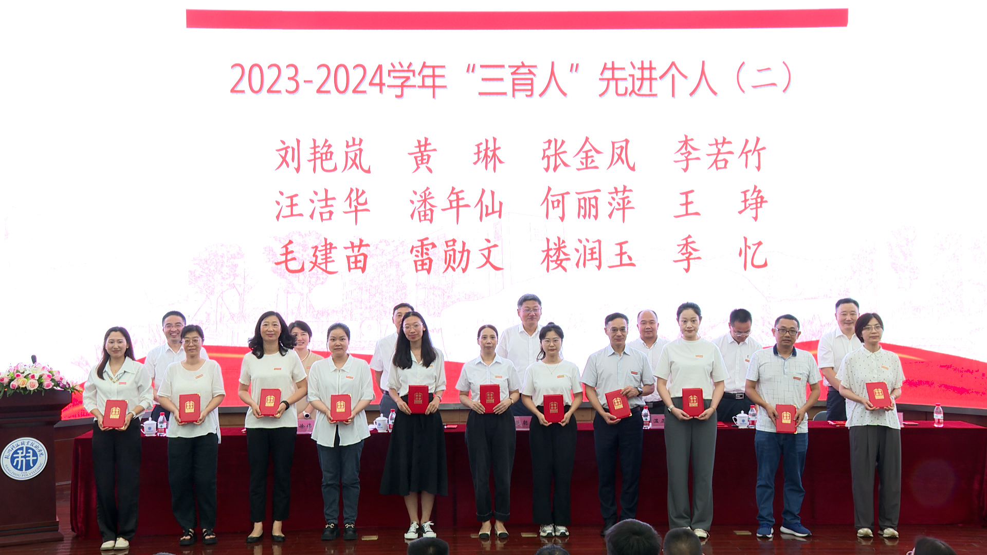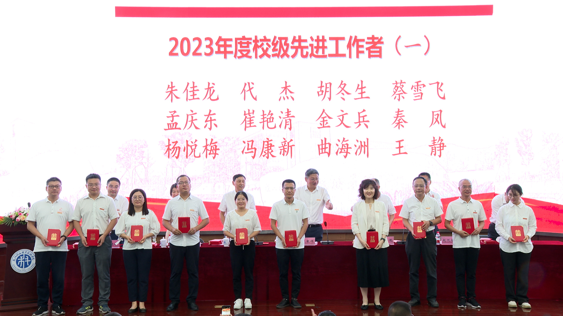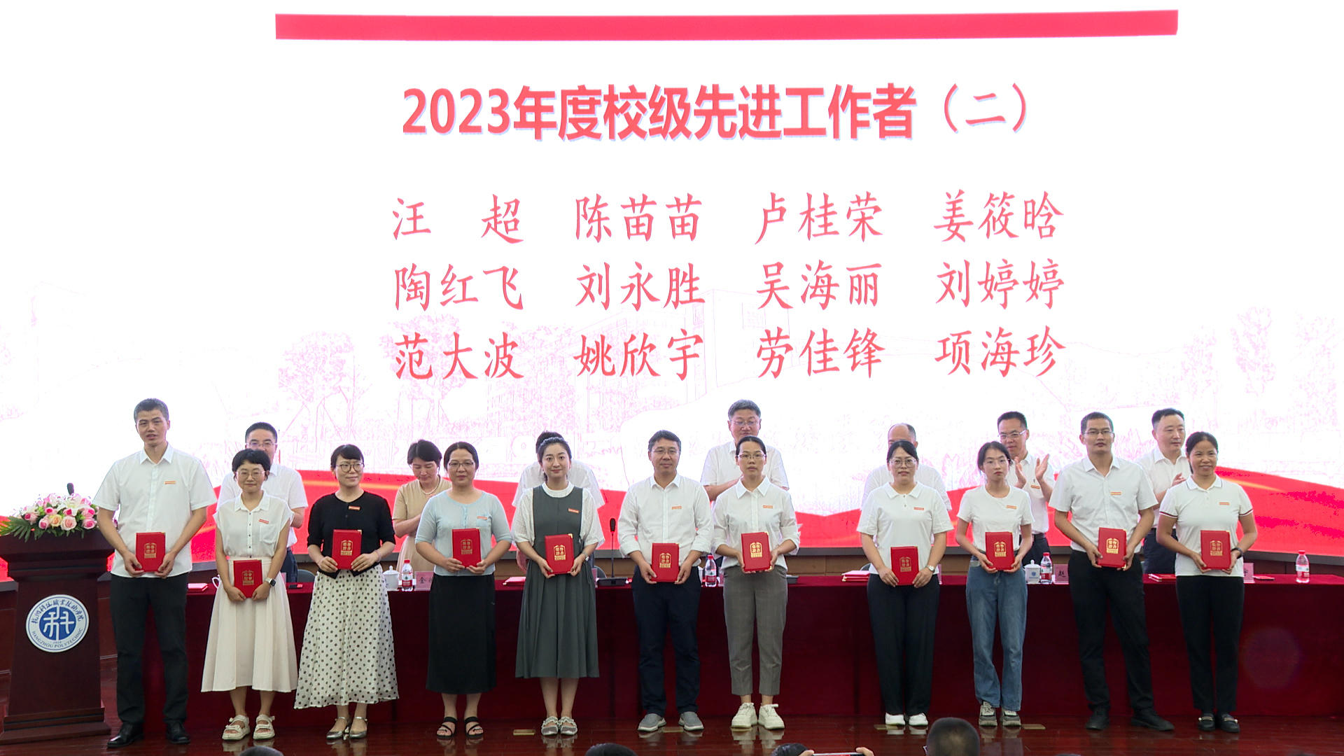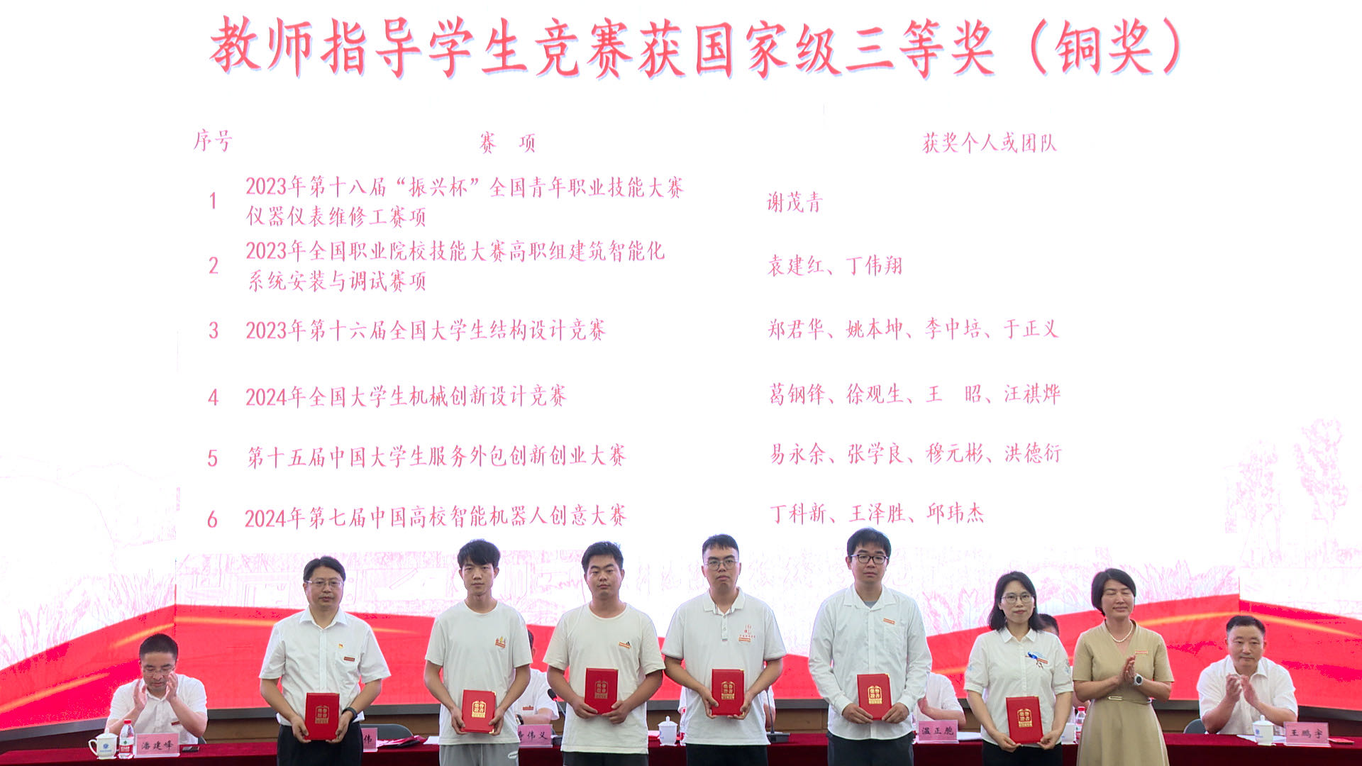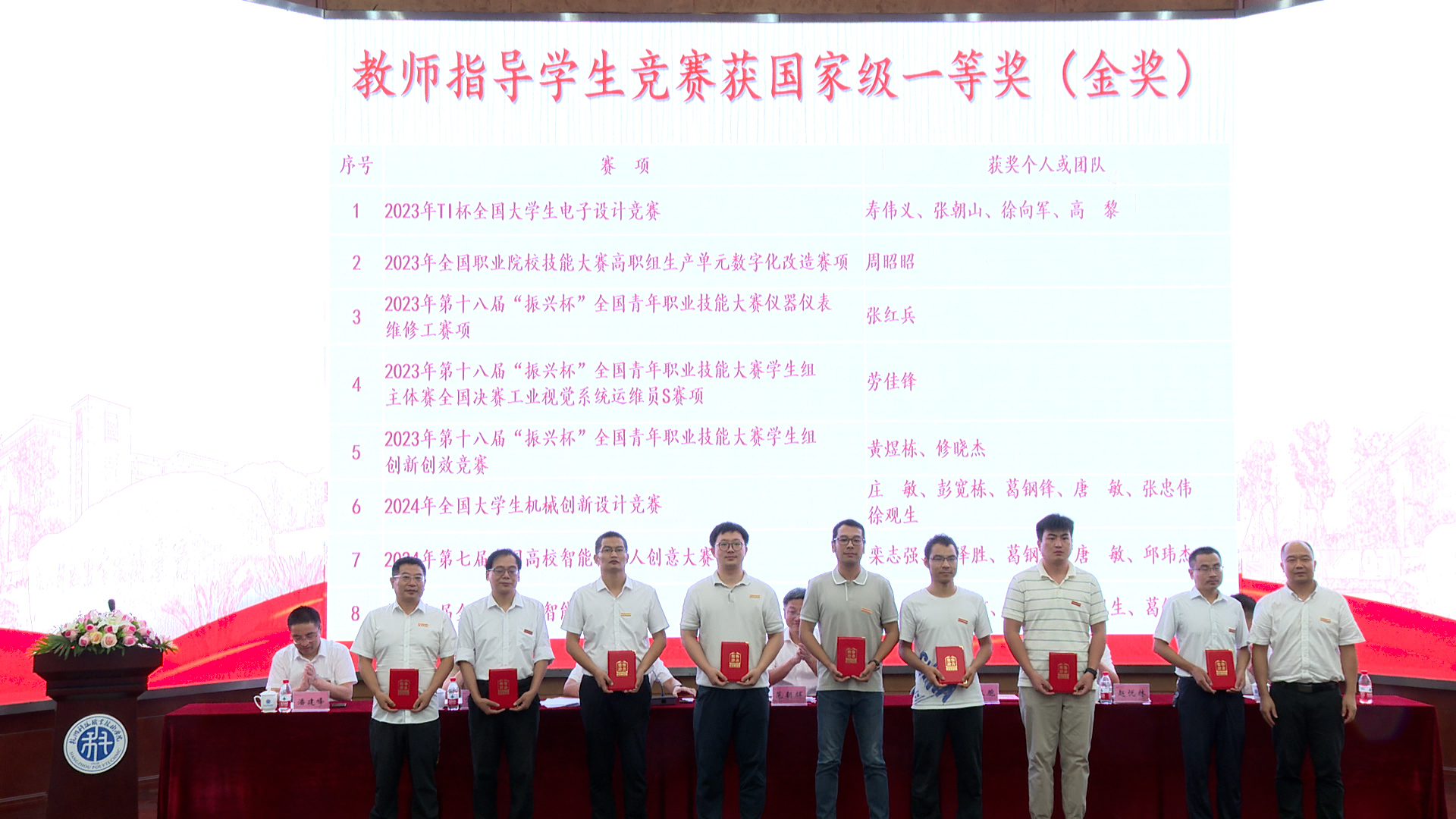 过去一年,我校广大教师和教育工作者深入学习贯彻习近平新时代中国特色社会主义思想和党的二十届三中全会精神,大力弘扬教育家精神,以高度责任感投入学校事业发展,以真情和关心投入学生培养,充分彰显立德树人的精神风貌、“爱满天下”的学校精神和仁爱奉献的思想境界,围绕“创一流 竞百强”目标,涌现出一大批师德高尚、业务精湛的优秀教职工和先进集体。大会现场,范朝辉、温正胞为获得“任教三十年荣誉证书”的教师授绶带,温正胞为“张红兵技能大师工作室”授牌,全体校领导为获奖的先进集体和个人颁奖。