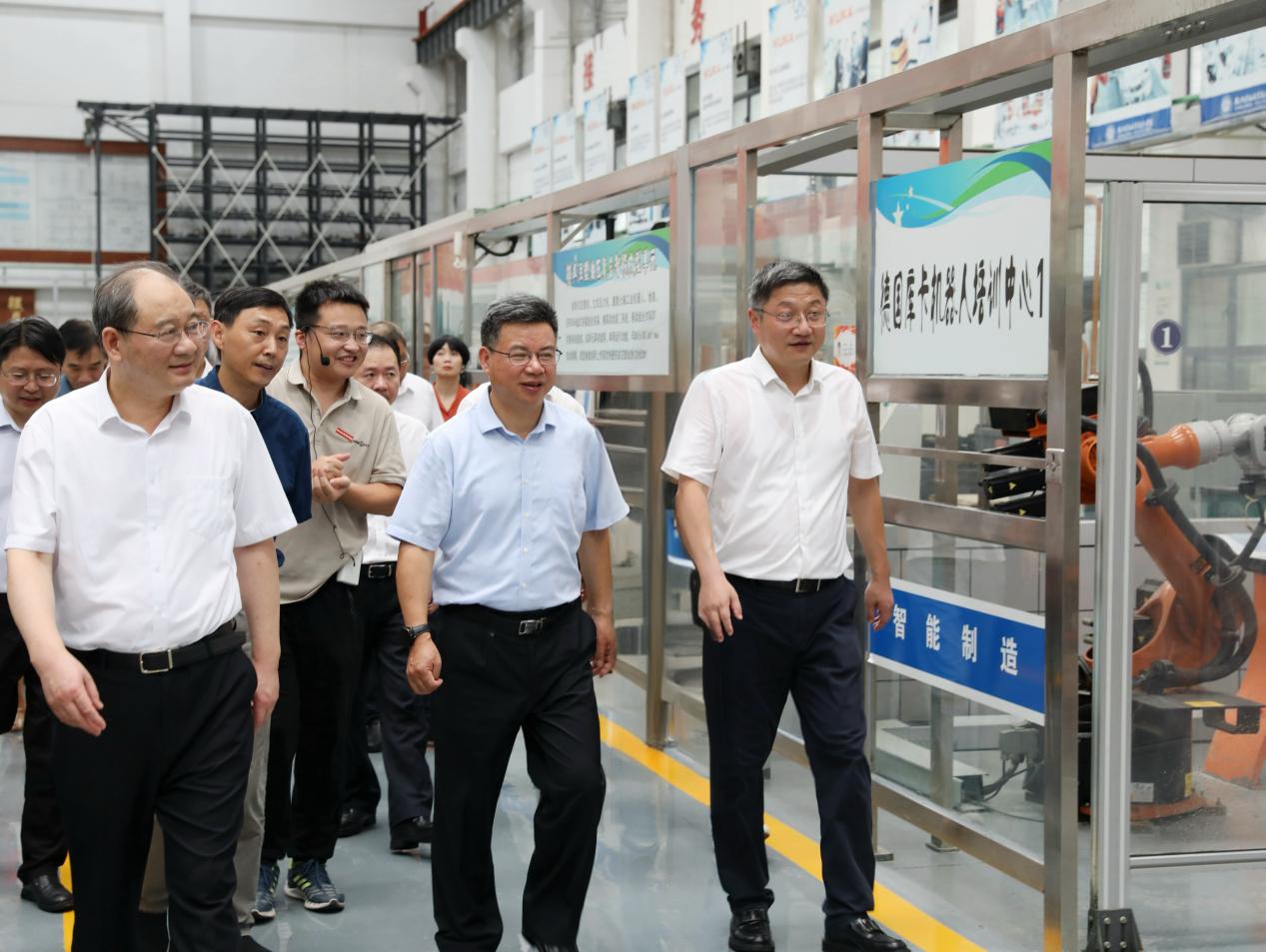 在智能制造学院智能制造技术应用中心,暨军民详细了解了学院“产学研培赛训”一体的人才培养模式探索实践情况。他强调,人工智能的发展将为教育带来颠覆式改变,职业教育要敢想敢做,引领学生紧跟新时代发展潮流,适应社会和市场需求,为培养服务杭州和浙江经济社会发展的杰出人才做出有益贡献。