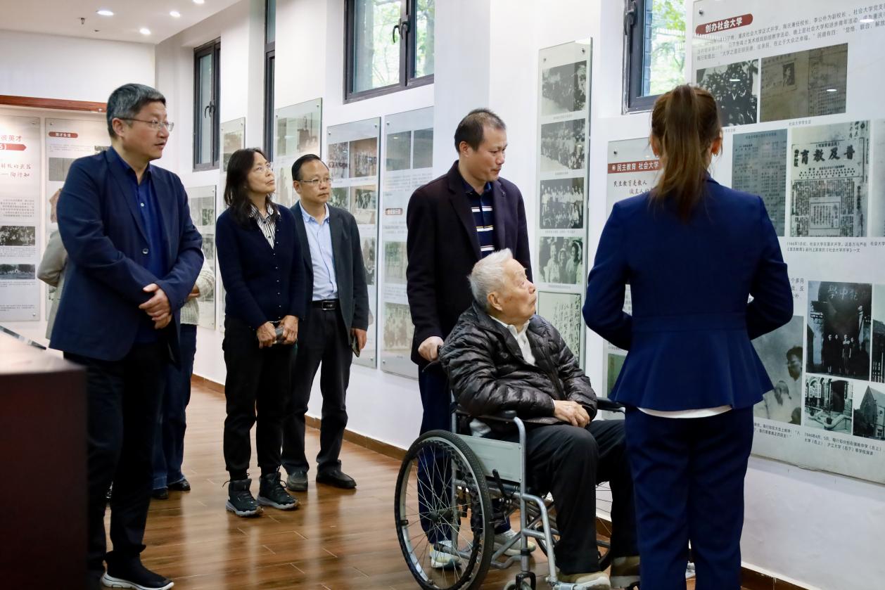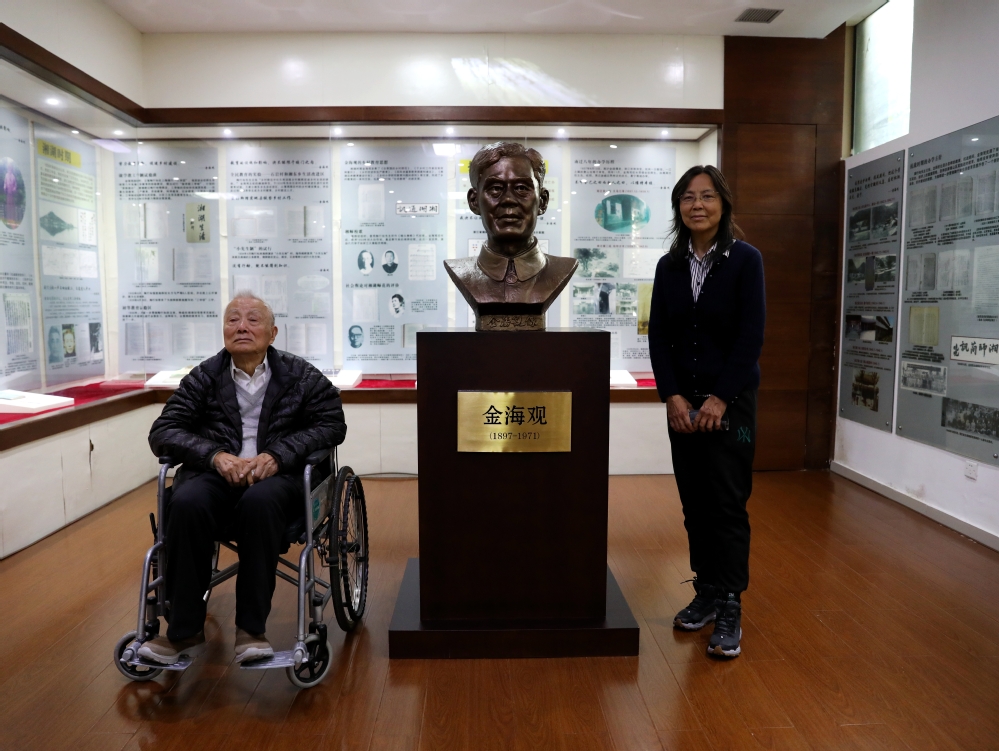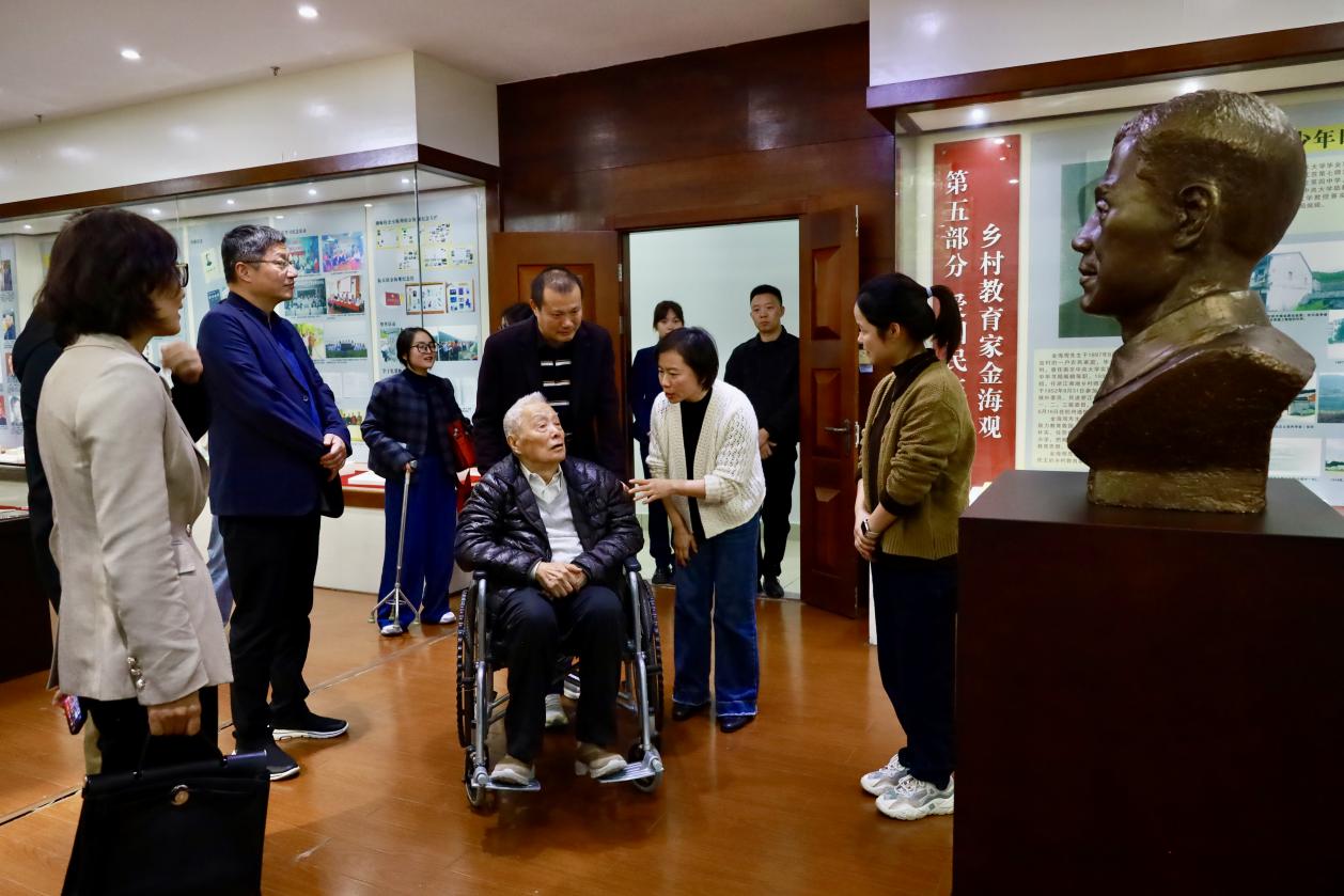 11月8日,原湘湖师范校长金海观长子金陵一行来访我校,党委书记范朝辉,党委委员、副校长赵悦林热情接待。萧山区人大社会建设工委主任董茶仙,学校办公室、校友办、陶行知研究中心相关负责人陪同。金陵一行参观了三风墙、时光走廊、陶行知研究馆、金海观纪念室等地,回顾了湘湖师范苦硬进取的奋斗史,并对我校赓续历史文脉,弘扬湘师精神的教育实践给予高度认可。