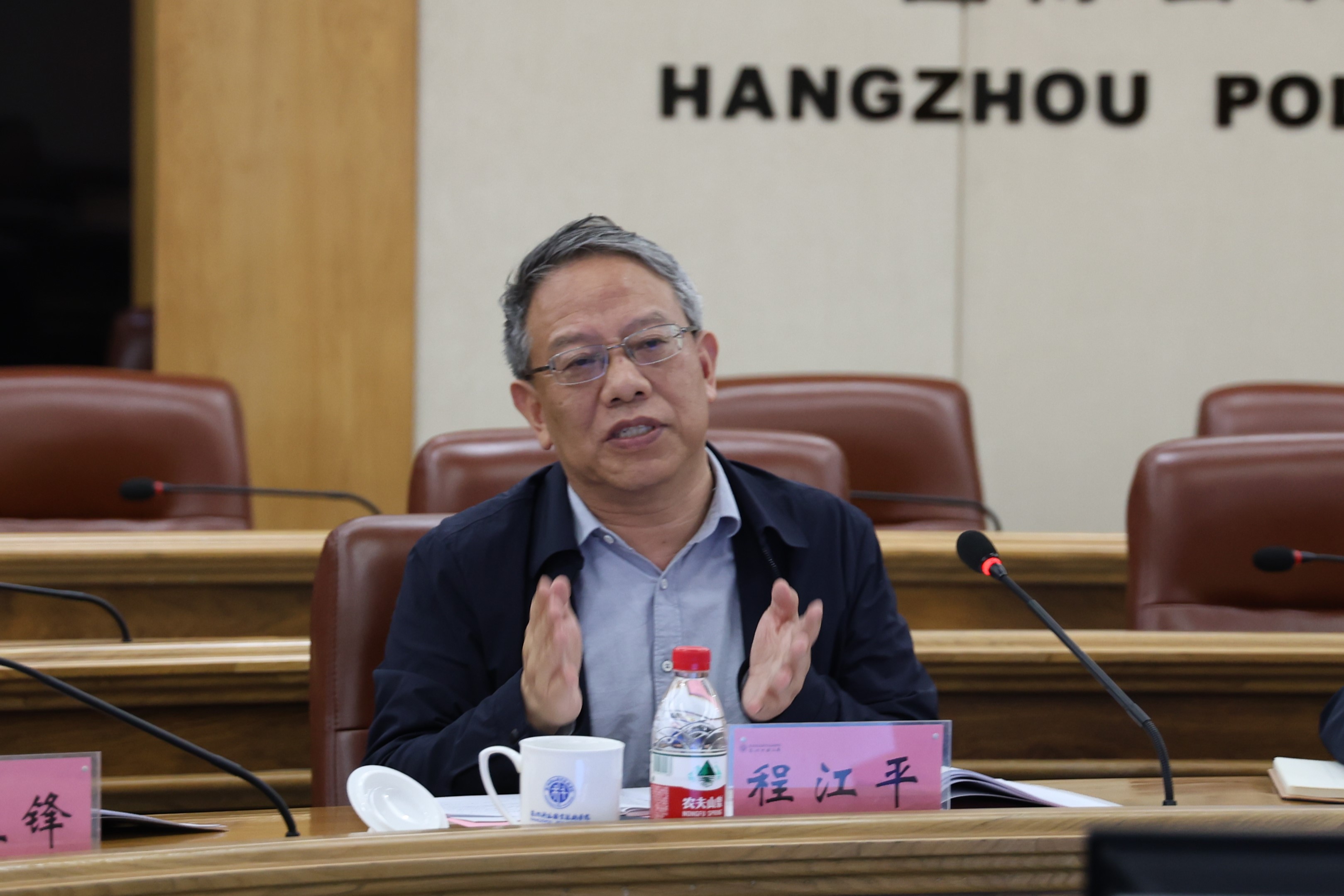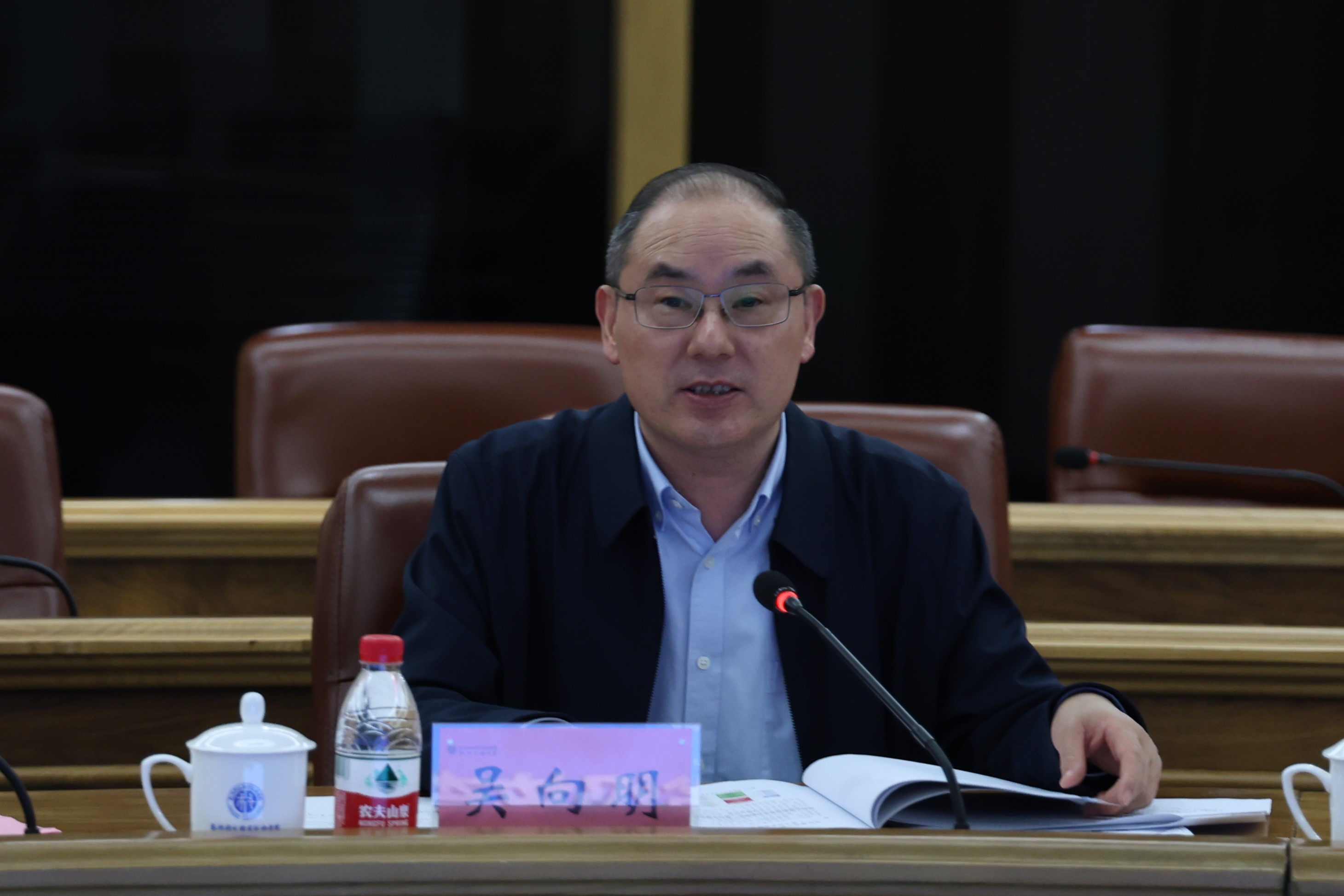 寿伟义主持核查工作会议,代表全校师生向与会领导、专家致以热烈欢迎和诚挚感谢。