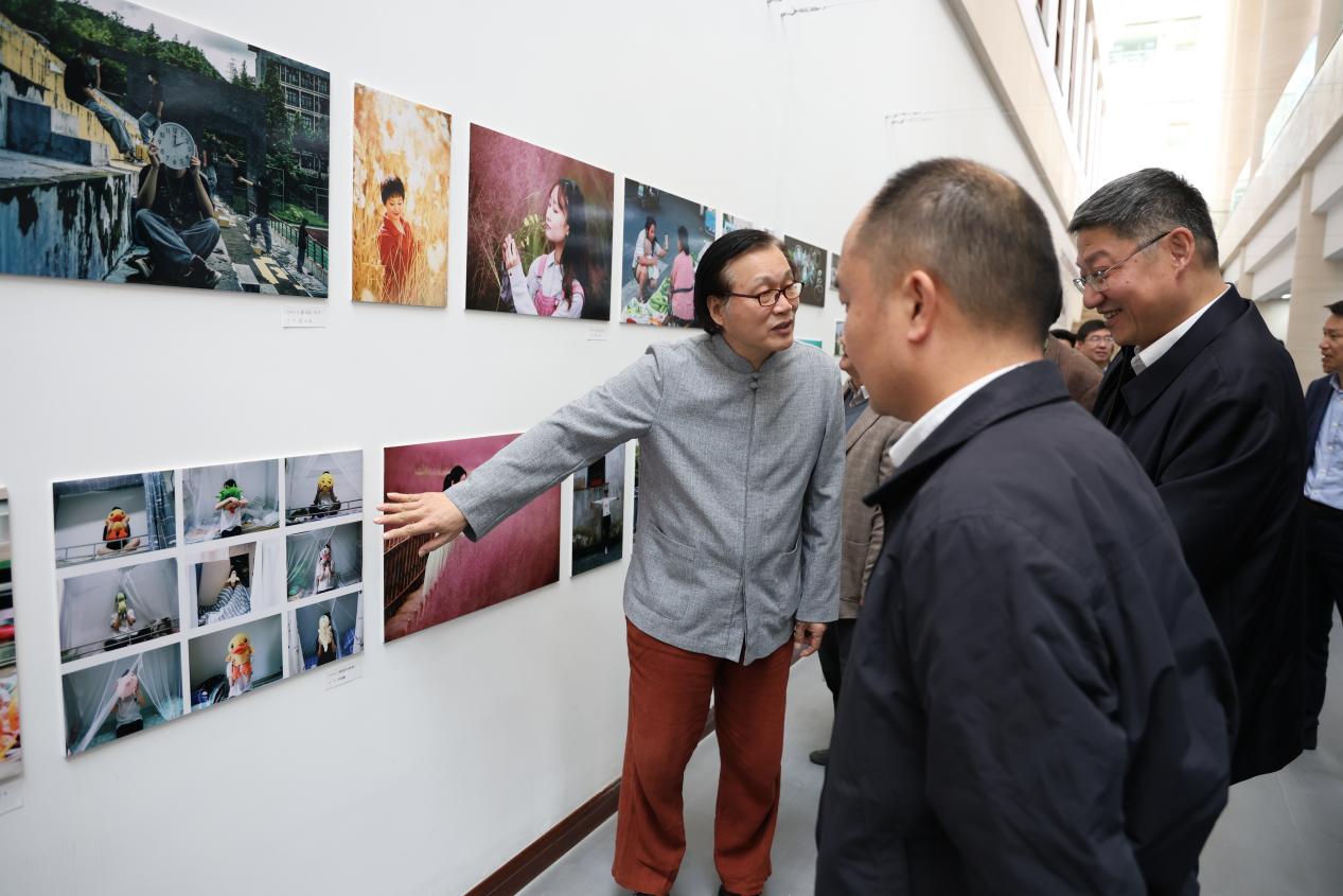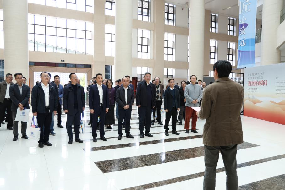 在党委书记范朝辉、校长温正胞和全体党政班子的陪同下,参加返校日活动的领导嘉宾、学校老领导、校友代表参观了作品展。党委副书记寿伟义主持作品展开展仪式。