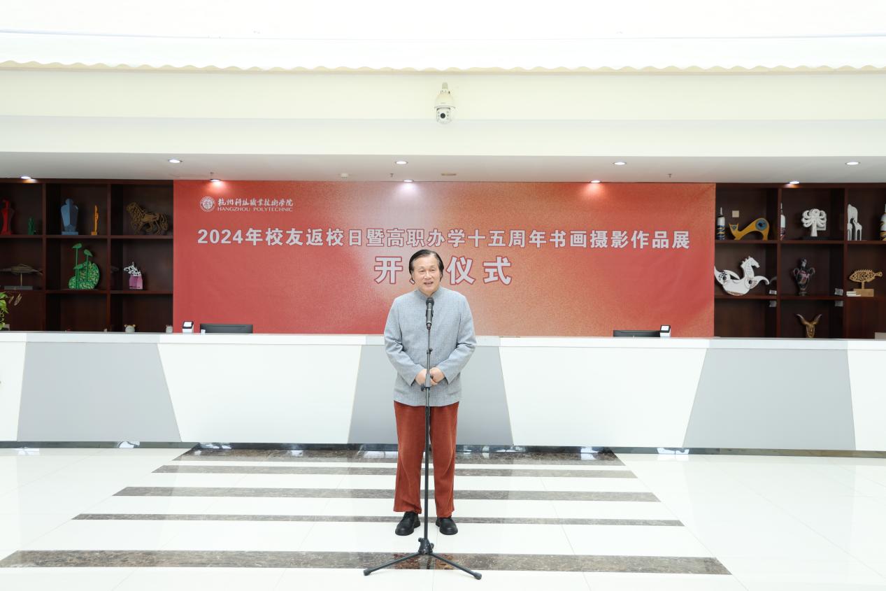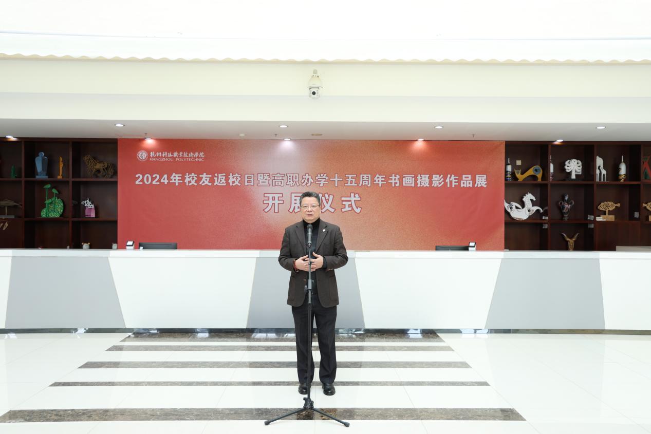 11月23日,2024年校友返校日暨高职办学十五周年书画摄影作品展在图书馆中庭正式开展。