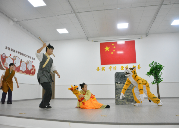 以话剧新形式呈现传统的周雄孝善故事,积极响应了乡村把好故事讲出去、演出来的需求,也是践行中华传统美德的创造性转化和创新性发展。话剧围绕孝善文化展开,以周雄的故事为主,小少年的故事为辅,采用穿越的形式,让古今两人相遇相识。指导教师提出要对中华传统美德的德目、观点进行新的诠释和激活,结合现代生活赋予其新的时代内涵,同学们认识到孝善文化的真正内涵。项目组最后确定,通过故事的层层铺开,展示孝善文化的三层次内涵:孝顺父母、孝善他人和孝行天下。话剧里,现代小学生传承古代周雄的孝善;现实中,通过话剧演出宣传周雄故事,传播孝善文化。
