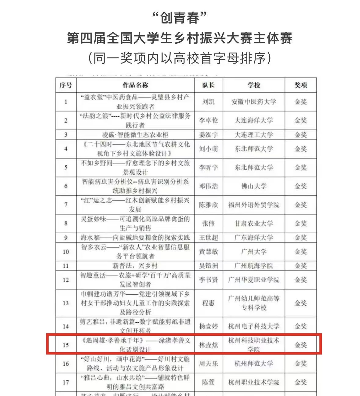 (“创青春”第四届全国大学生乡村振兴大赛主体赛获奖名单)