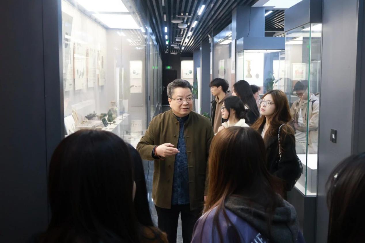 打铜巷地处南宋文化核心之地,承载着南宋的繁华记忆。同学们来到位于此处的杭州江南锡器博物馆,参观了高古锡器、食具礼器等锡器藏品,馆长陈建明为同学们生动讲解了锡器的前世今生。据介绍,锡器从宋代开始走入千家万户,而打铜巷更是南宋铜锡器具手工业作坊聚集地,精美锡器反映了南宋时期杭州的经济文化生活面貌。“锡器折射出宋代布衣青巷的生活日常,同学们只有了解这些才能发自内心的喜爱,而这些就是对中国传统文化的深刻认同与自豪”。