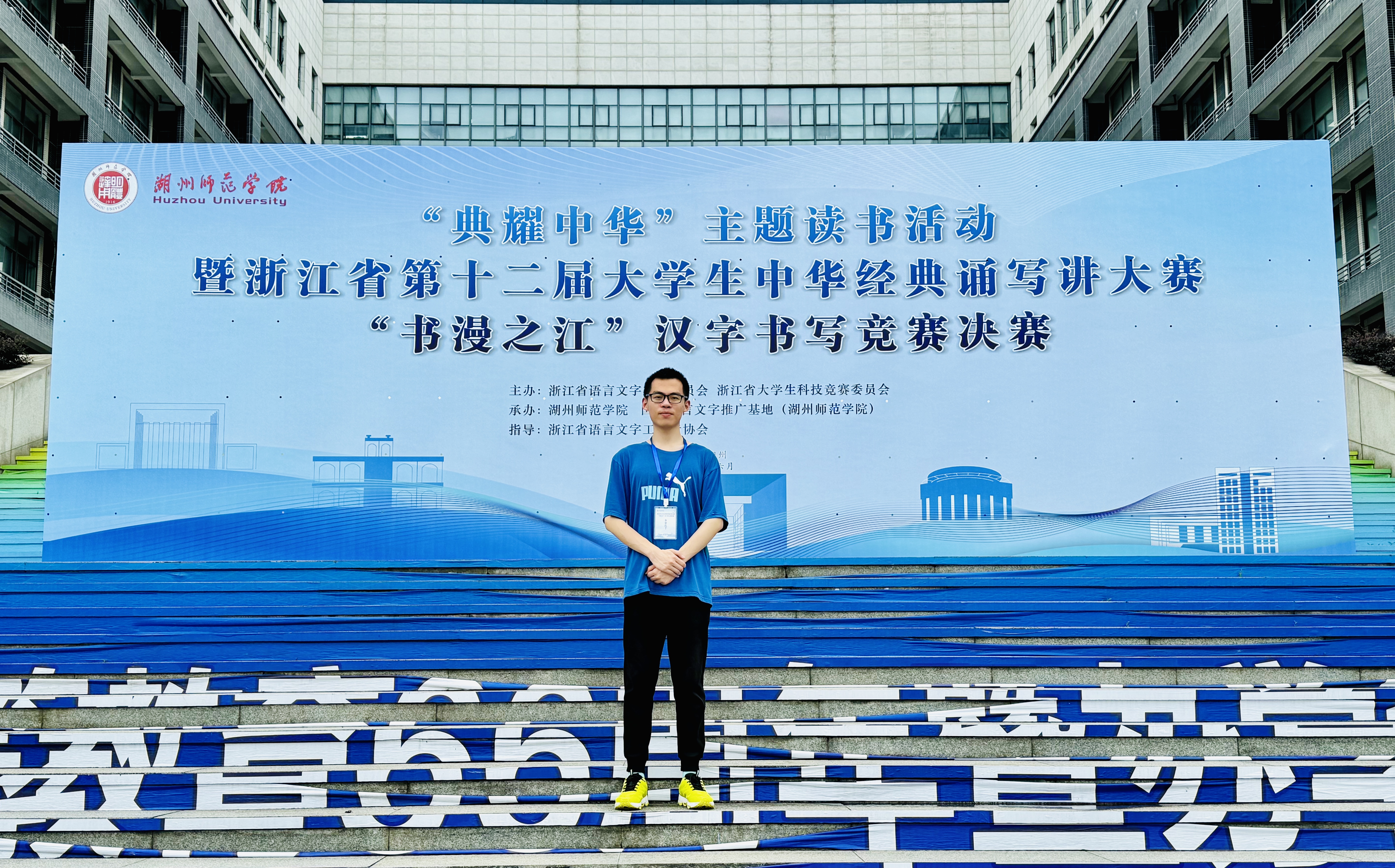 中华经典诵写讲大赛由“诵读中国”“笔墨中国”“诗教中国”和“印记中国”四个赛项组成,其中大学生组比赛为一类学科竞赛。前期,我校参加了浙江省诵、写、讲三个赛项的选拔,斩获了8项省一、2项省二、4项省三的好成绩,4人5项入选国赛。在“诗教中国”诗词讲解大赛全国总决赛中,大学生组由高职高专、本科、研究生同台竞技,全国仅84名选手参赛。