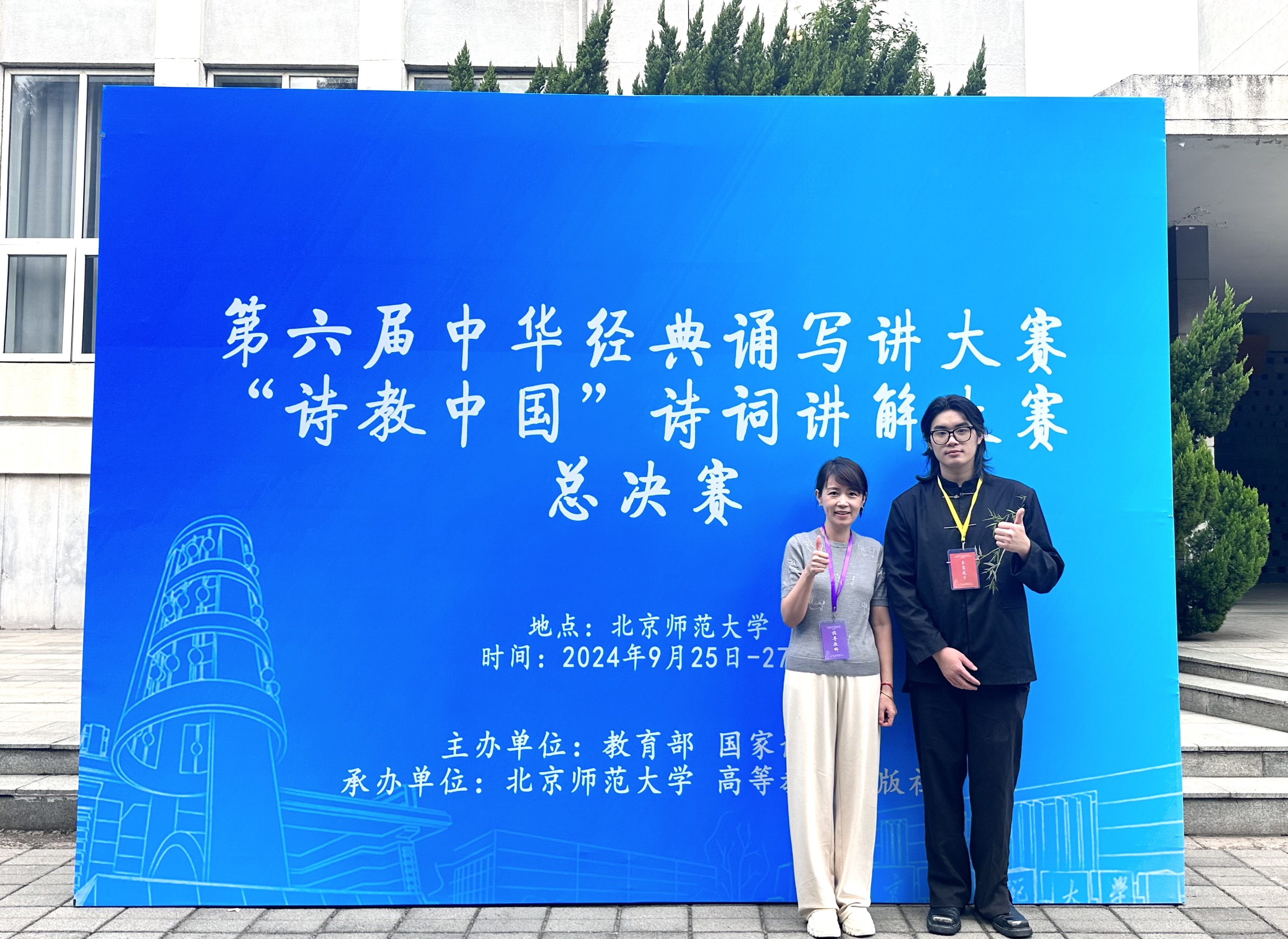 近日,由教育部、国家语委主办的第六届中华经典诵写讲大赛落下帷幕。在“诗教中国”诗词讲解大赛大学生组全国决赛中,我校艺术设计学院环境艺术设计专业2311班李应琅同学获得全国二等奖、广告艺术设计专业2324班陈转同学获全国优秀奖。在“笔墨中国”汉字书写大赛大学生组全国决赛中,陈转获得全国优秀奖,实现了我校在两项赛事全国总决赛中“零的突破”。
