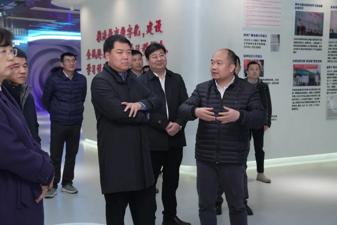近日,教育部组织的全国数字化赋能学习型城市建设工作推进会在杭州顺利召开,教育部职成教司副司长李英利一行15人来杭州开放大学开展现场考察。校长温正胞,党委委员、副校长金徐伟以及继续教育学院相关负责人接待了考察团代表。