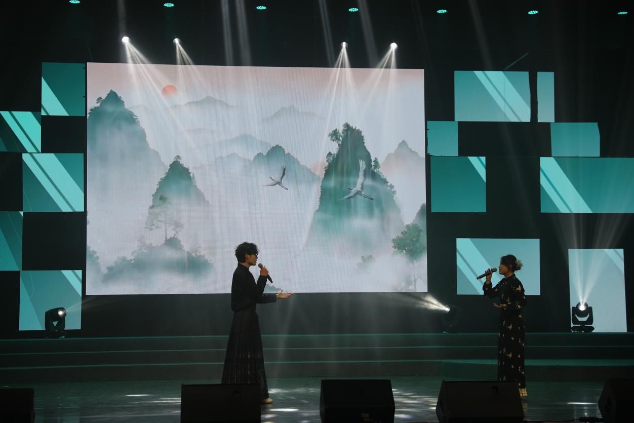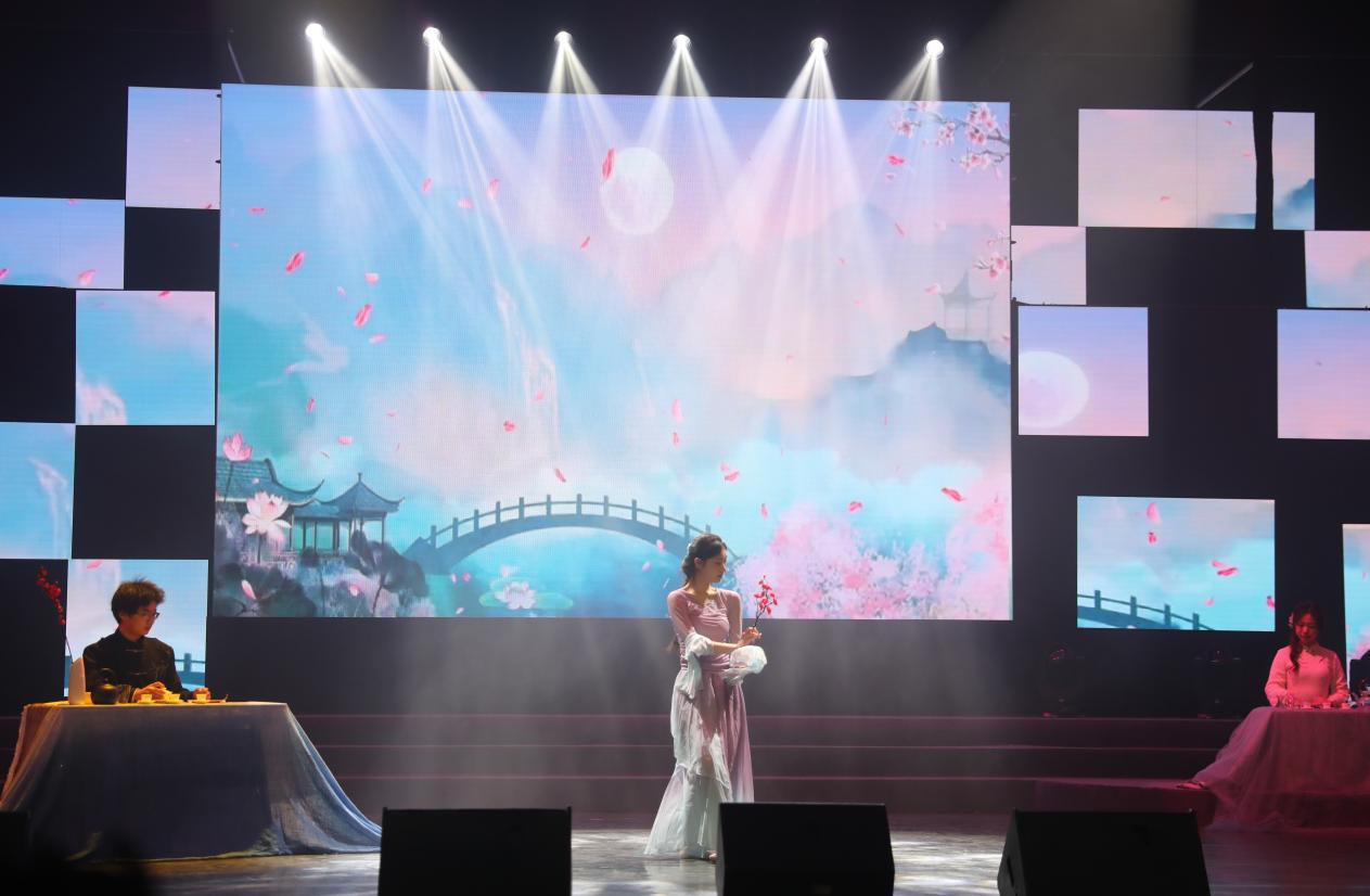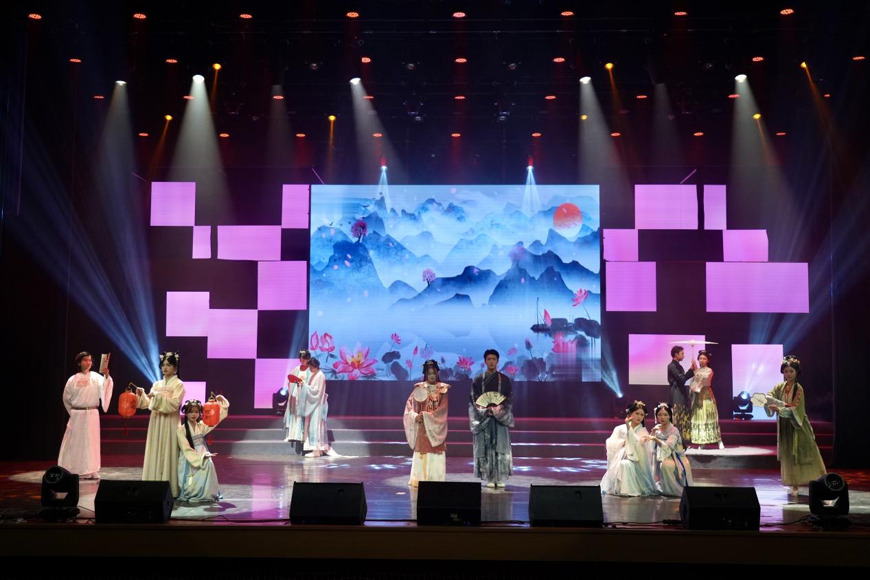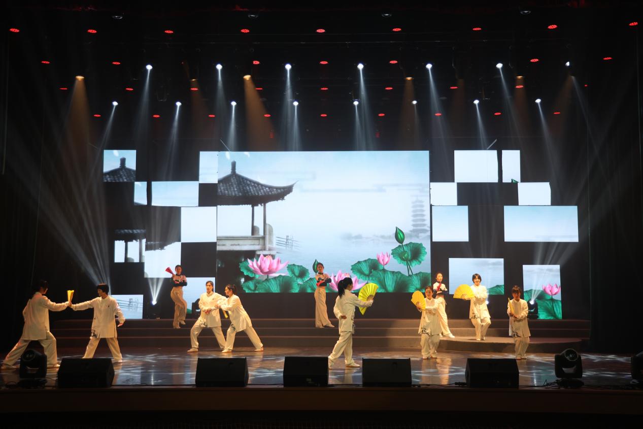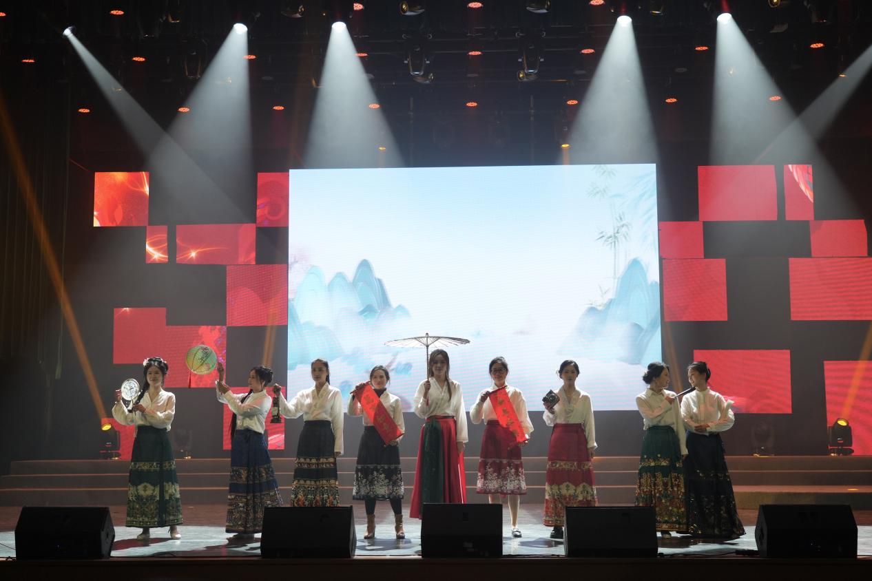 茶艺表演《茶韵宋舞》、服装秀《华服雅韵·汉风华章》《马面裙装焕新风》、武术《武道群雄》《响韵太极扇》等展现中华优秀传统文化的节目,与马来西亚和南非留学生带来的歌曲《新年好》《恭喜发财》相映成辉,美美与共,共同绘就杭科院职教出海的美好画卷。