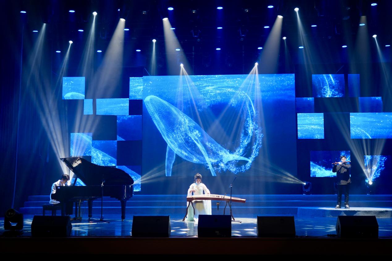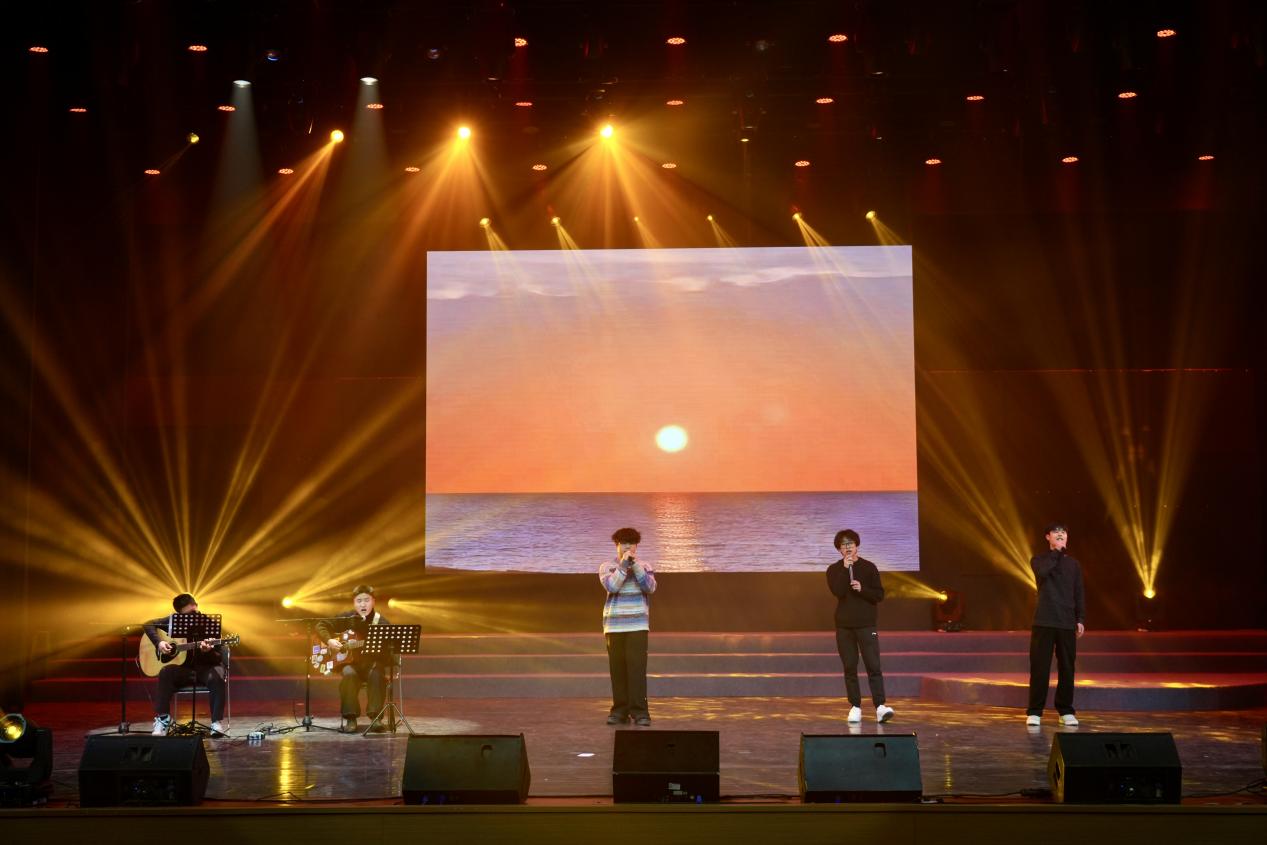 吉他弹唱《黄昏》、器乐合奏《大鱼》、舞蹈《Forever》《歌声在那时》《花絮》、歌曲《苹果香》《山丘》旋律清新流畅,节奏轻松明快,为全校师生营造了温馨祥和的节日氛围。