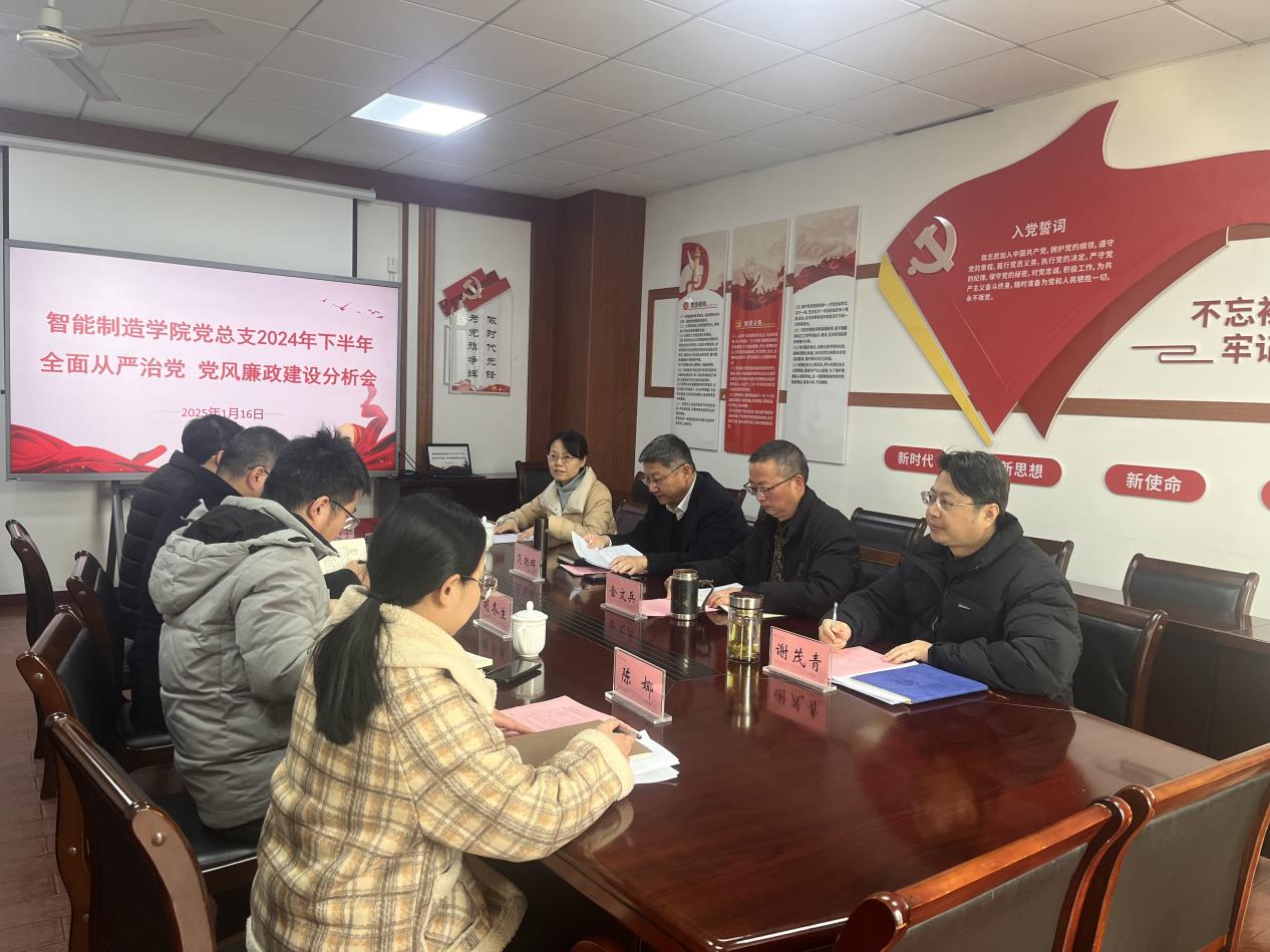 1月16日,智能制造学院党总支召开2024年下半年全面从严治党、党风廉政建设分析会。党委书记范朝辉出席会议,智能制造学院党政班子成员、党总支委员参加会议。