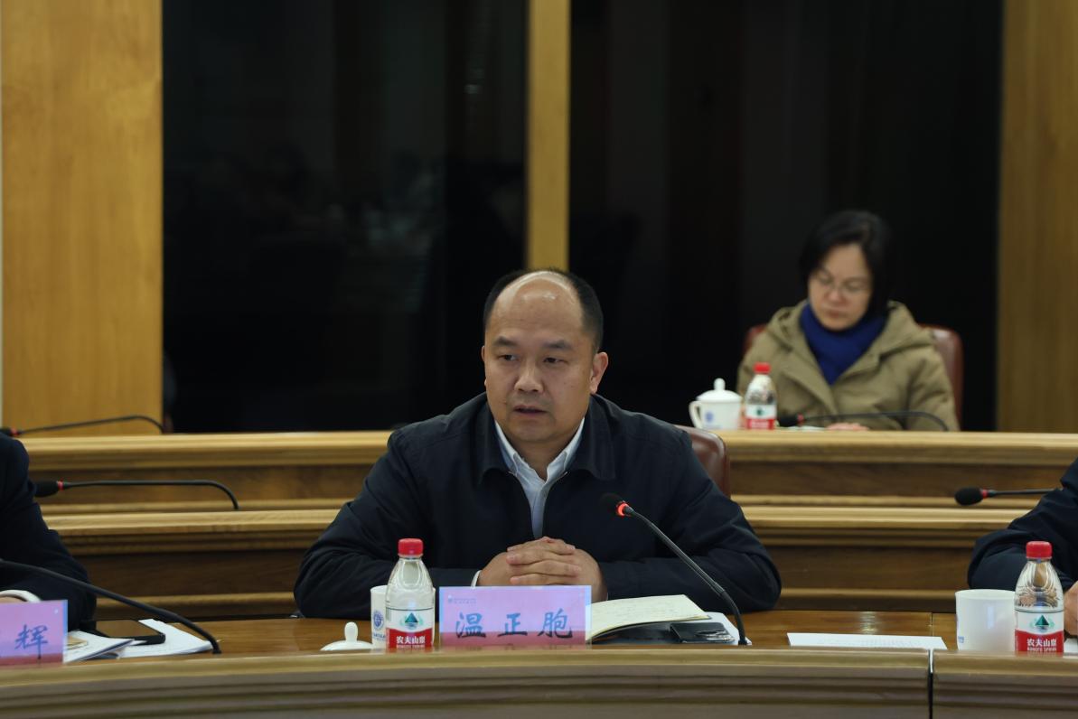 温正胞对学校“双高”建设和申报工作予以高度肯定,他表示,2025年是“十四五”规划的收官之年,也是“十五五”谋划之年,全校上下必须进一步解放思想,以更大的决心、勇气和魄力推进改革创新和制度建设,全面把握区域产业与人工智能深度融合的发展趋势,“做强、做优、做特”专业品牌,将局部比较优势放大为全面发展优势。温正胞强调,各学院、各部门要紧密配合,相互支撑,充分发挥“三块牌子”的办学特色和资源叠加优势和“苦硬进取、惟真惟实”的校风,以干事创业的激情活力,持续拓展学校“创一流 竞百强”事业发展的宽度、厚度和深度。