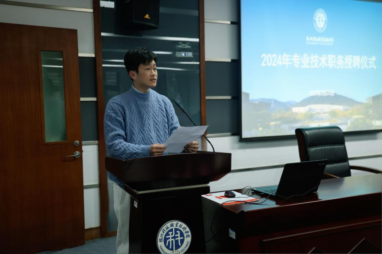 2月25日,我校举行2024年教师专业技术职务授聘仪式。校长温正胞为晋升教师颁发聘任证书并讲话,党委副书记寿伟义宣读专业技术职务聘任文件。相关职能部门负责人及2024年晋升专业技术职务的教师参加授聘仪式。