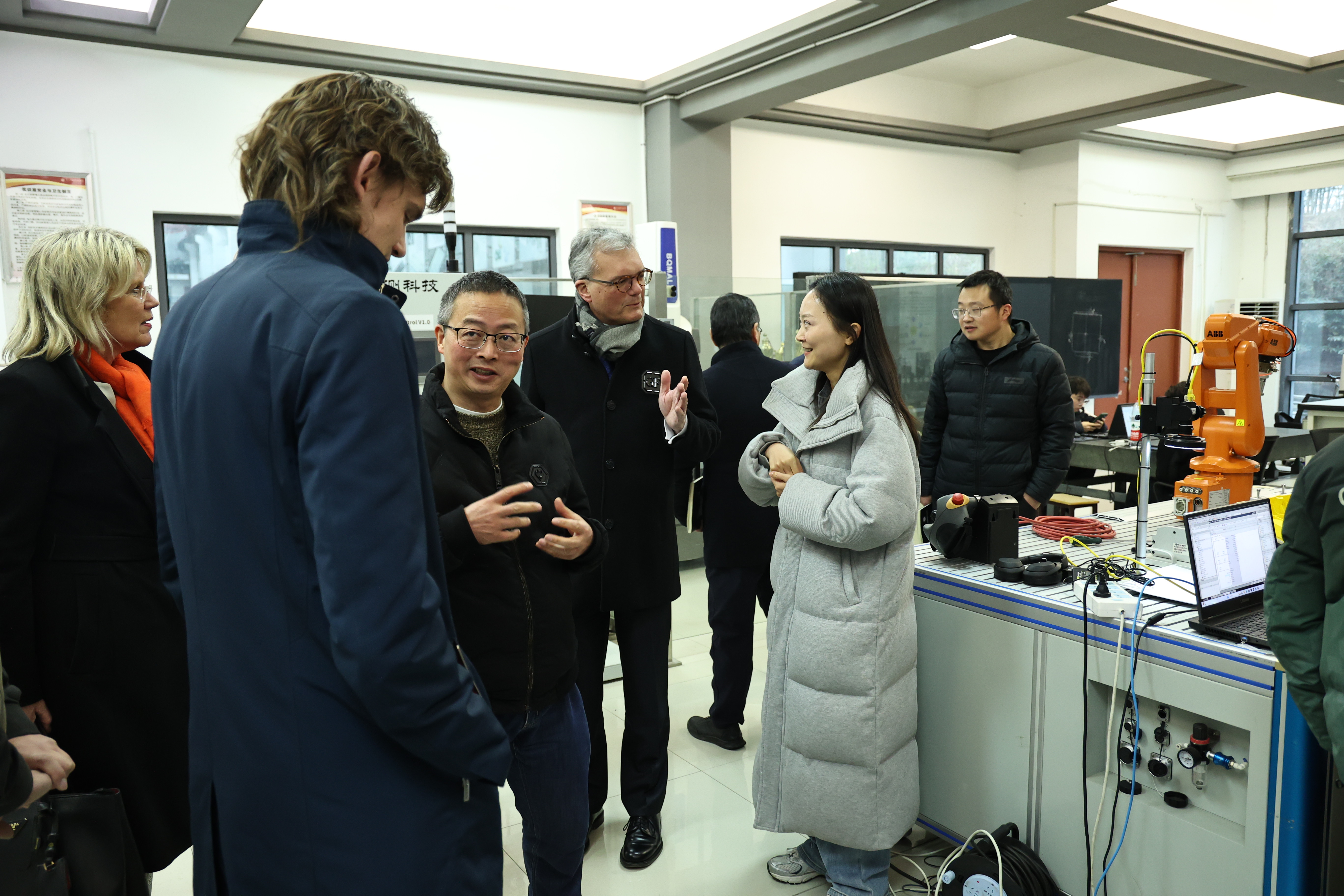 会后,安妮·德雷尔一行参观了我校智能制造技术应用中心,与中德合作项目在读学生亲切交流。