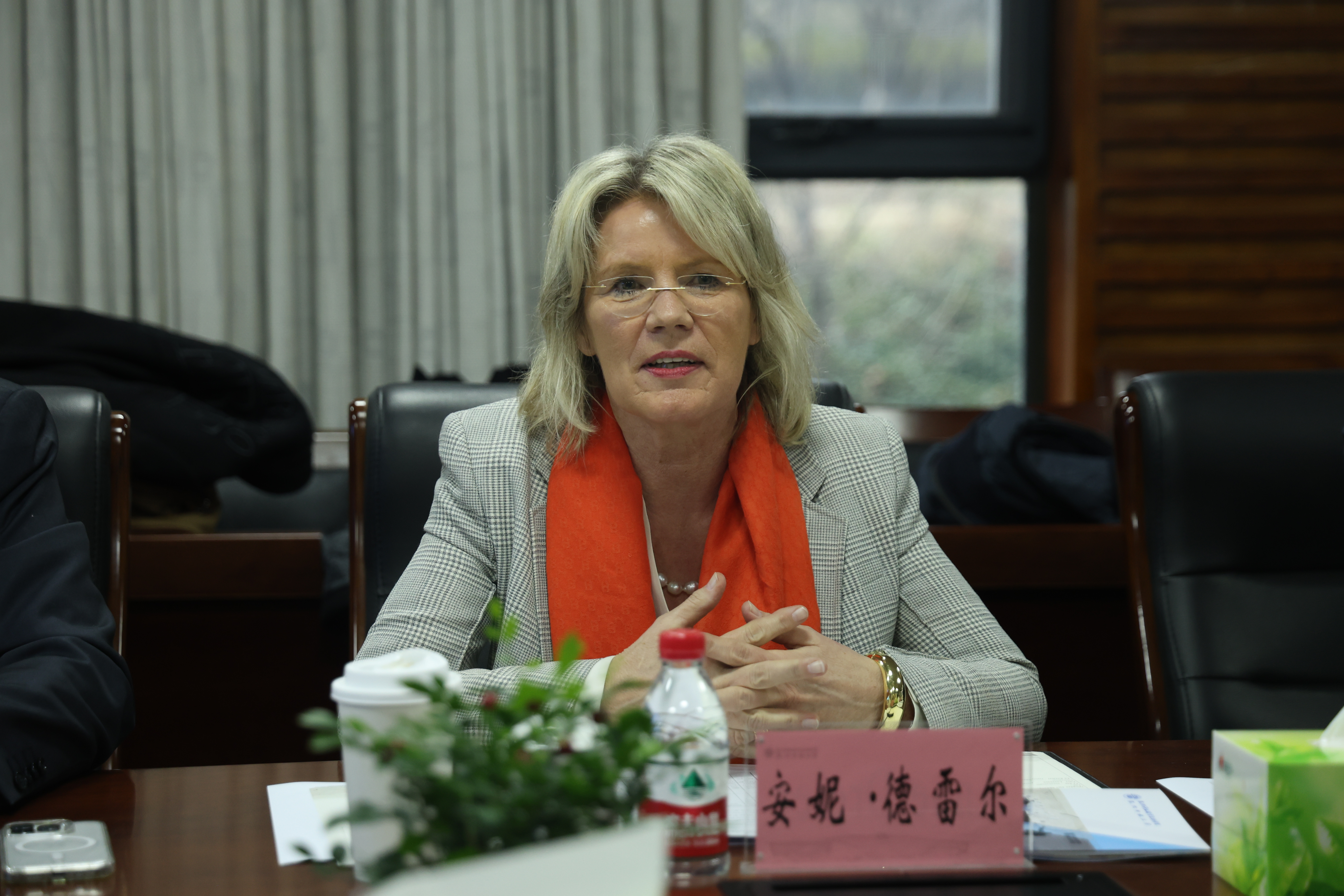 安妮·德雷尔对我校的热情接待和在项目合作方面做出的努力表示感谢,并高度肯定了项目合作成果。她介绍了德国比勒费尔德中等企业应用技术大学优势学科、教学特色、人才培养、国际化项目的发展情况。安妮·德雷尔表示,两校拥有一致的办学理念,要以中德合作办学项目为平台,推动两校多领域、深层次的交流合作,为中德经济和企业发展做出更大贡献。