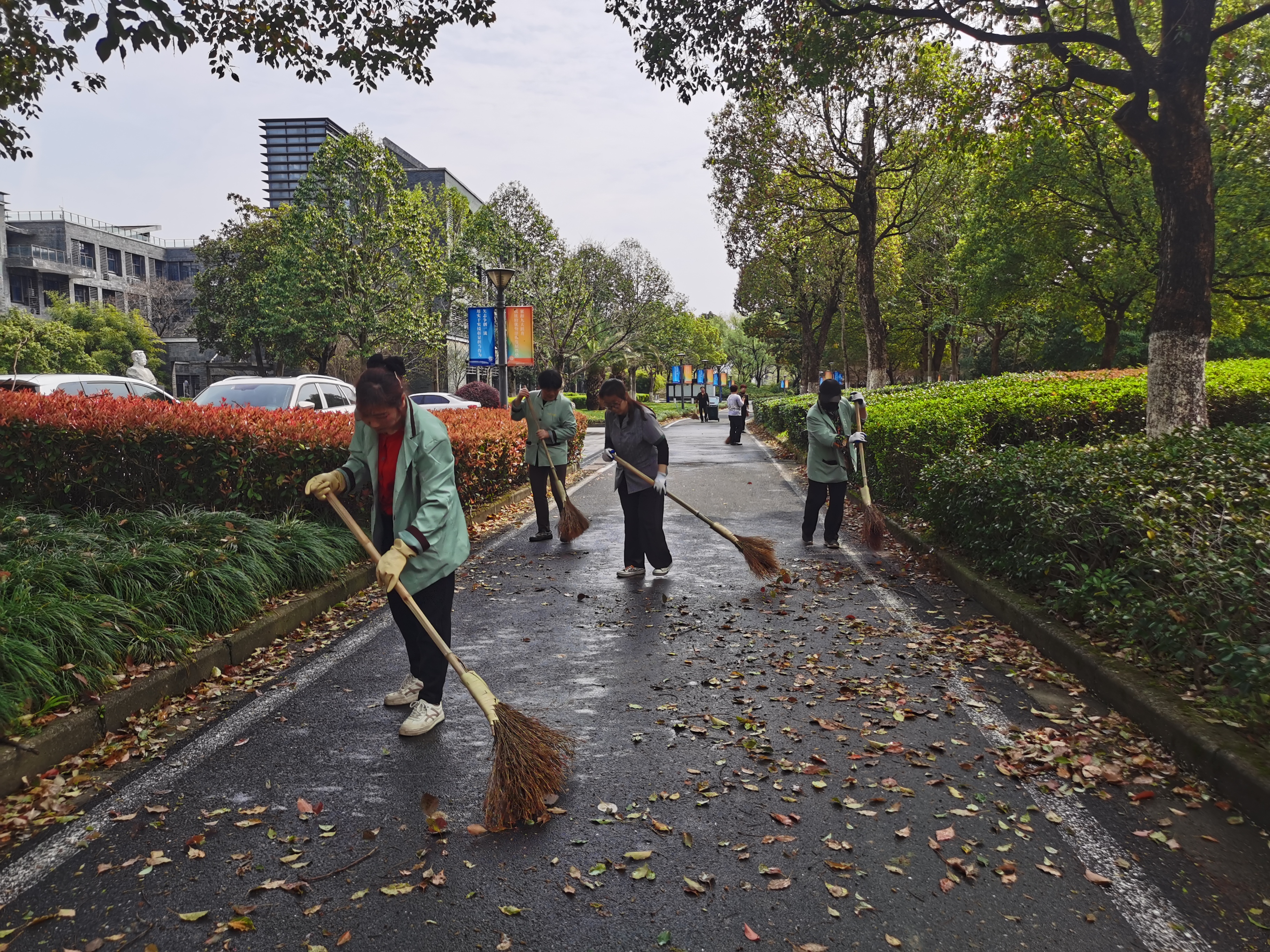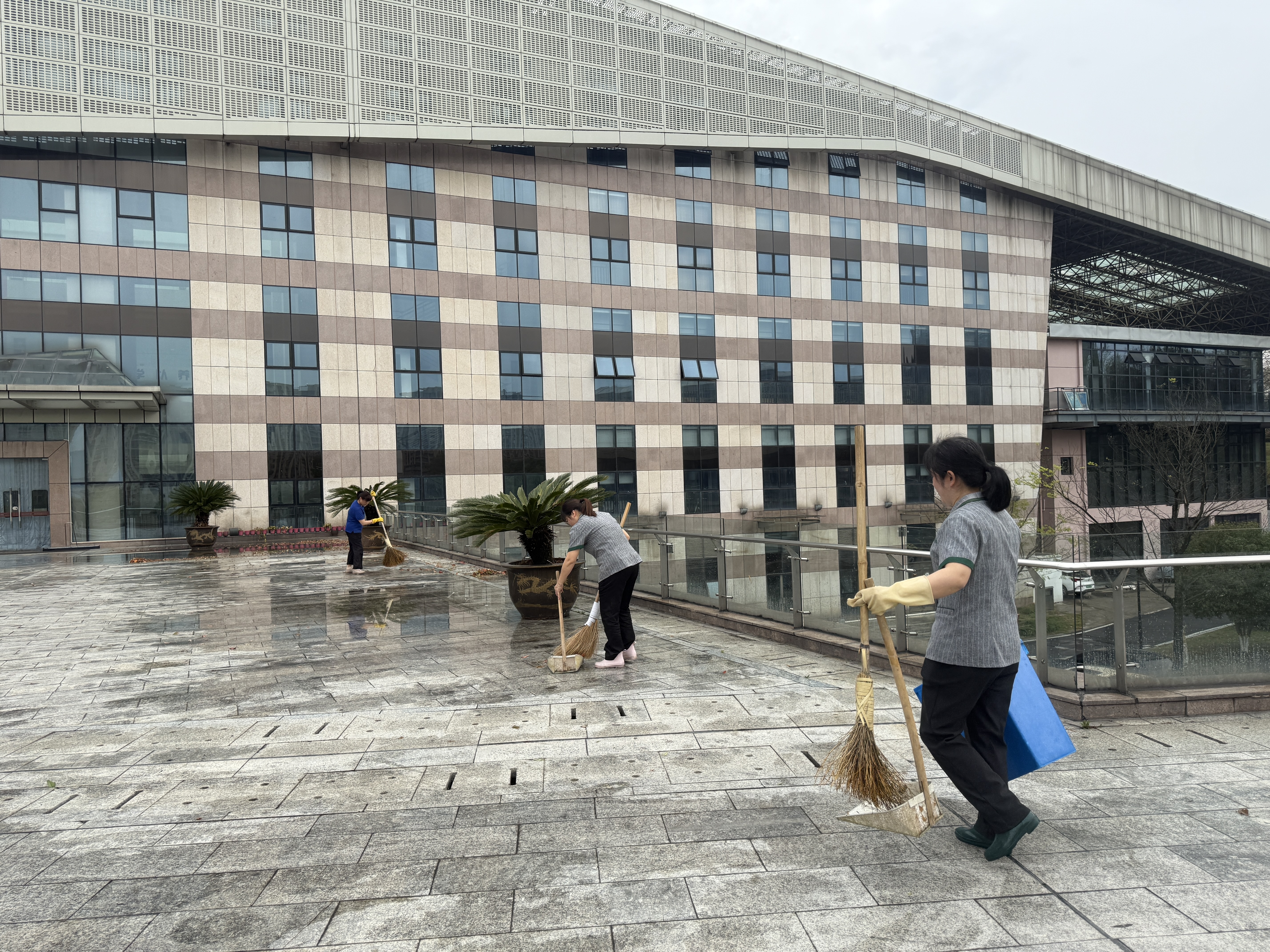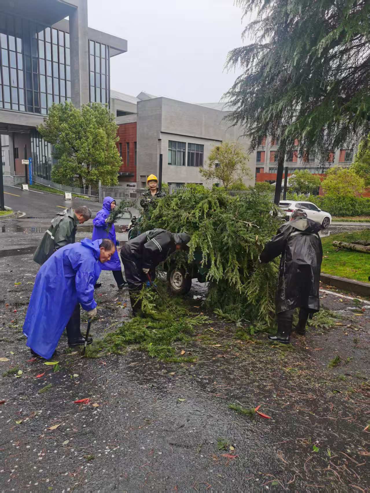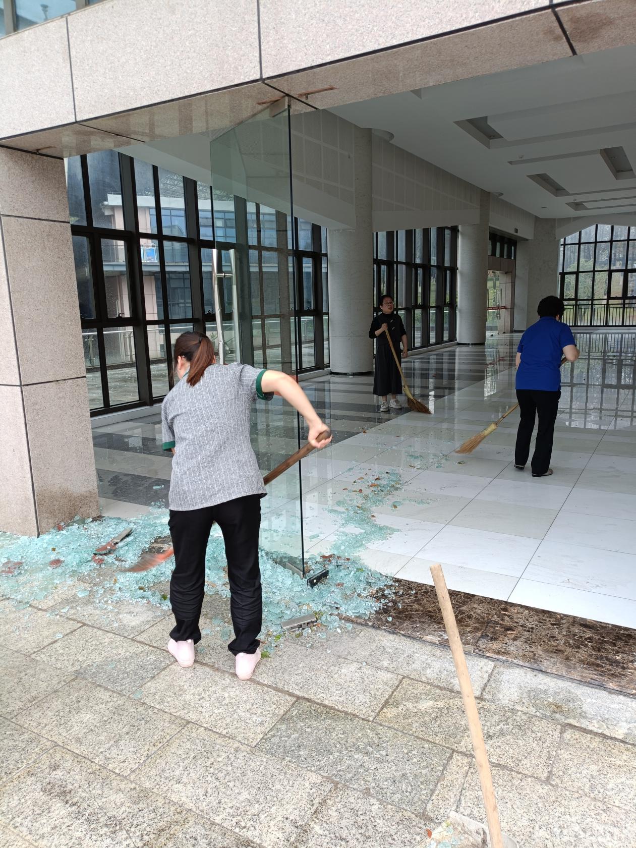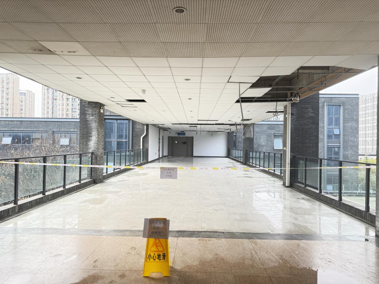巡查组分头深入实训楼、教学楼、综合楼、餐饮实训中心、教工招待所和东面智能实训厂房等地,重点对人员密集的学生宿舍楼、荷园学生活动中心及文体中心建筑群进行了地毯式巡检。后勤部门迅速调集保洁、绿化及维修人员,对校园内倒伏的树木、散落的杂物进行清理,疏通主干道及紧急通道,并在危险区域设置警示标识,全力保障师生们正常通行和校园安全。同时,各校区同步启动应急响应,各相关部门通过多途径提醒学生远离建筑屋檐区域,避免高空坠物风险,加强安全教育。目前,教学楼连廊顶板的加固工作和松动檐沟的初步检修均已顺利完成。