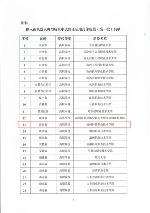 工业机器人专业是杭科院的重点建设专业,我校一直高度重视该专业的发展,充分发挥自身办学优势,在工业机器人领域取得了显著的成绩。此次申报,学校立足钱塘区国家级智能制造基地,深入挖掘基地在工业机器人设备配备、技能培训、大赛承办、校企合作等方面的成果,找准项目切入点,精心准备申报材料,成功入选国家机器人检验检测公共服务平台中试验证矩阵——机器人典型场景中试验证基地合作院校。