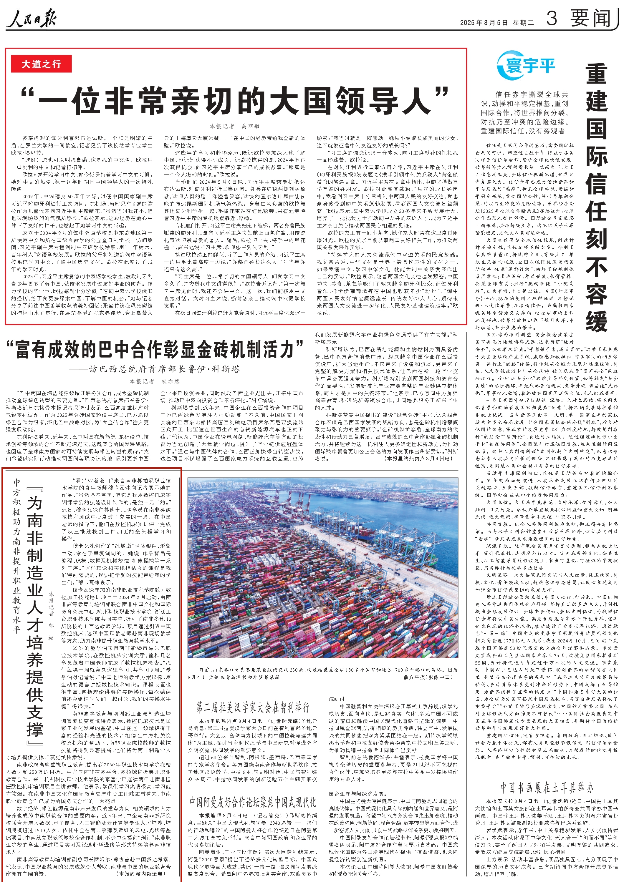 8月5日,《人民日报》要闻版刊发《中方积极助力南非提升职业教育水平“为南非制造业人才培养提供支撑”》一文,聚焦杭科院探索中非职教合作新路径,不断创新国际化办学模式,通过持续打造“中南丝路学院”平台,将中国职业教育的先进经验和技术输送到南非,帮助当地提升职业教育的“输血”和“造血”功能的实践探索。