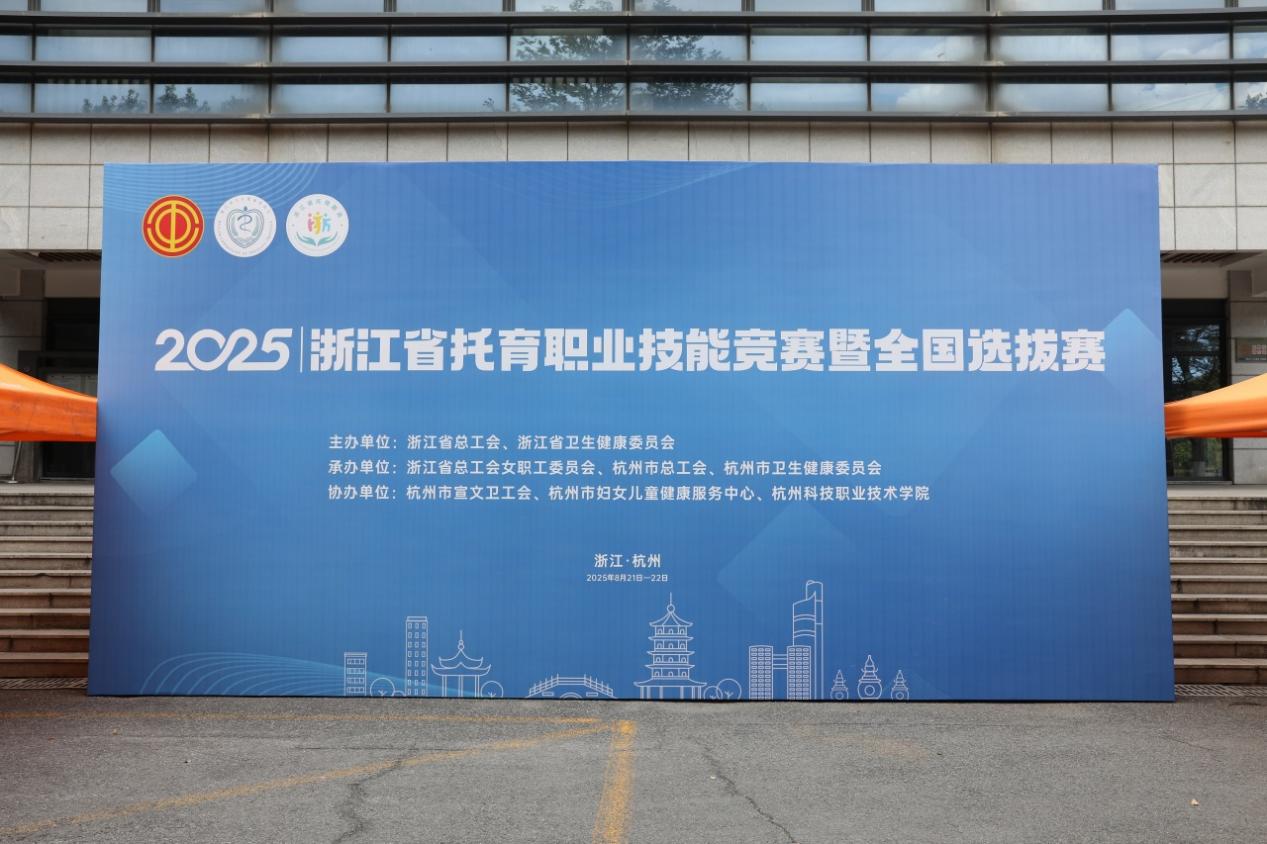 8月21日至22日,2025年浙江省托育职业技能竞赛暨全国选拔赛在我校举办。本次竞赛由浙江省总工会、浙江省卫生健康委主办,浙江省总工会女职工委员会、杭州市总工会、杭州市卫生健康委承办,杭州市宣文卫工会、杭州市妇女儿童健康服务中心及我校共同协办。