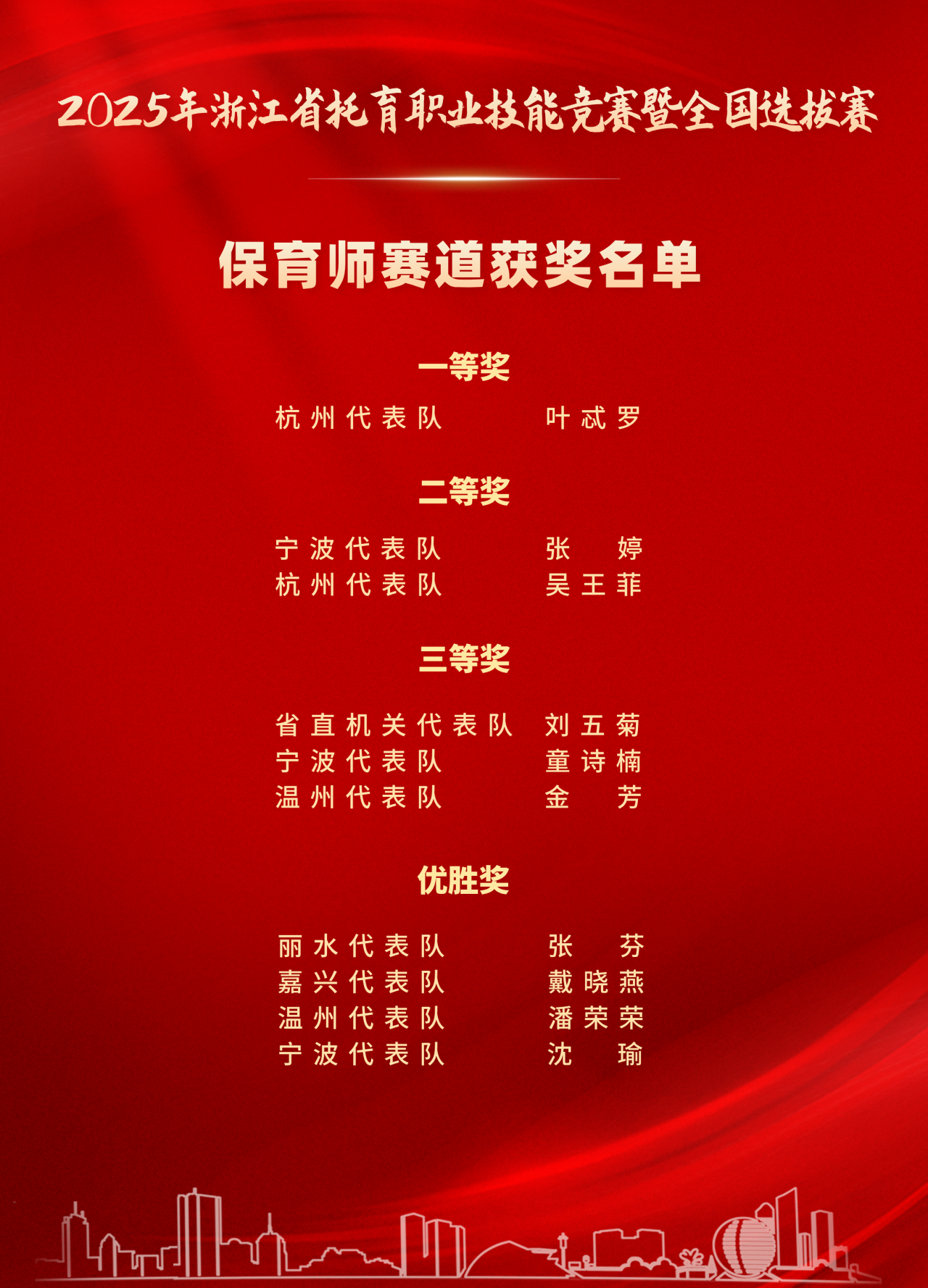 来自全省各市和省产业工会的12支代表队、近百名选手同台竞技。在为期两天的比赛中,选手通过理论测试和实操比拼,全面展示专业技能,充分体现浙江省托育人才队伍的高水平发展态势。