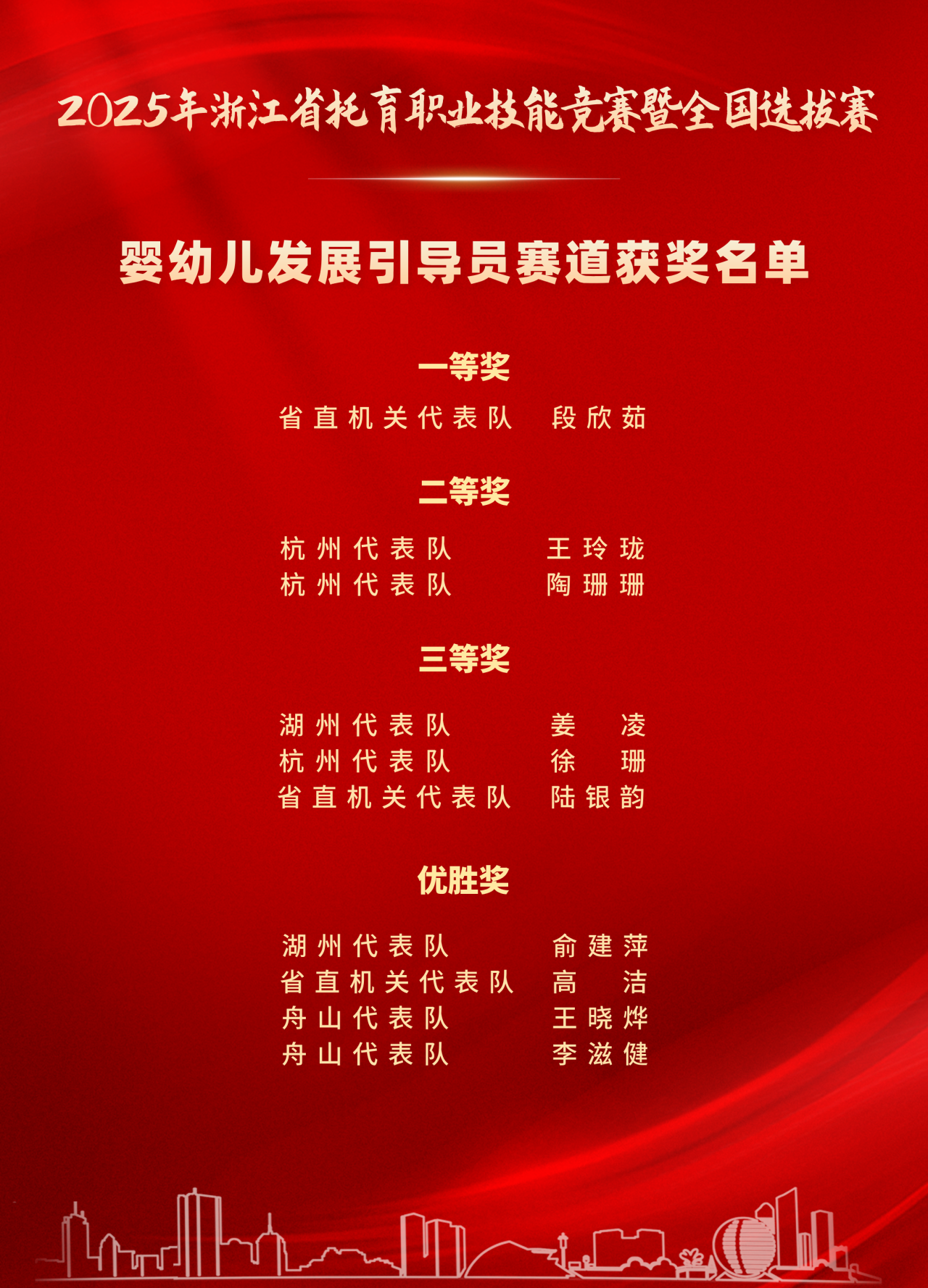 托育职业技能竞赛是提升托育服务质量的重要推动力,也将持续促进人才培养体系完善,推动竞赛标准转化为日常服务规范,助力更多家庭享受到优质、普惠的托育服务。此次大赛的成功举办,充分体现了主办单位对我校办赛能力的充分认可,彰显了高职院校在托育领域的示范引领作用。我校学前教育学院坚持以“岗课赛证”综合育人为路径,借助高规格赛事平台,全面检验婴幼儿托育服务与管理专业的人才培养质量和建设成果。未来,学前教育学院将持续发挥专业优势,积极助力“浙有善育”,为培养更多高素质技术技能人才、推动托育服务高质量发展贡献杭科力量。