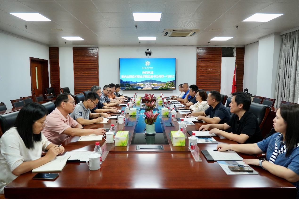 9月18日,重庆应用技术职业学院党委书记何菲一行来我校考察调研。校党委书记范朝辉接待考察团并座谈交流,杭州市陶行知研究会会长谢列卫,校党委委员、宣传部部长卢杰骅和办公室等相关部门负责人参加。