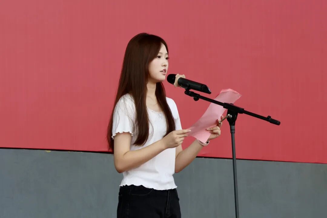 汽车工程学院吴放和学前教育学院李唯辰代表老生发言。吴放以“从普高‘三无学生’到全国技能竞赛获奖者”的蜕变经历,鼓励新生拒绝“躺平”,把握大学“试错成本最低”的黄金期,通过技能竞赛、社团实践等突破自我,强调“动起来比想清楚更重要”,要勇敢书写属于自己的精彩故事。李唯辰则聚焦学前教育“以爱育爱”的本质,结合自身经历,诠释教育是“心灵共鸣的双向成长”,指出“教育价值需亲自书写”,寄语新生“人生是旷野而非轨道”,以脚踏实地的努力定义属于自己的大学生活。