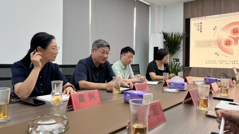 杭州国锐商业管理有限公司作为文旅新物种商业平台,以品牌运营和IP打造为核心,深耕文创产品开发和优质内容输出,通过策划、投资、运营、管理一体化模式,为项目产业赋能。范朝辉一行在企业负责人的讲解下,详细参观了企业展厅,观摩企业优秀文创产品,了解企业“文化+科技+旅游”融合发展理念。