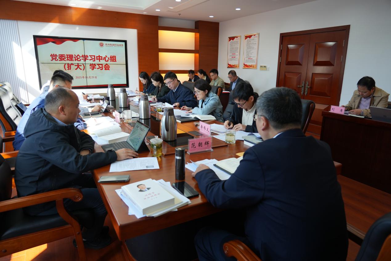 10月29日,杭州科技职业技术学院召开党委理论学习中心组(扩大)学习会,专题学习领会党的二十届四中全会精神,深入学习《习近平谈治国理政》第五卷和《习近平关于注重家庭家教家风建设论述摘编》。党委书记范朝辉主持会议,校长温正胞等党政班子全体成员参会并作交流发言。