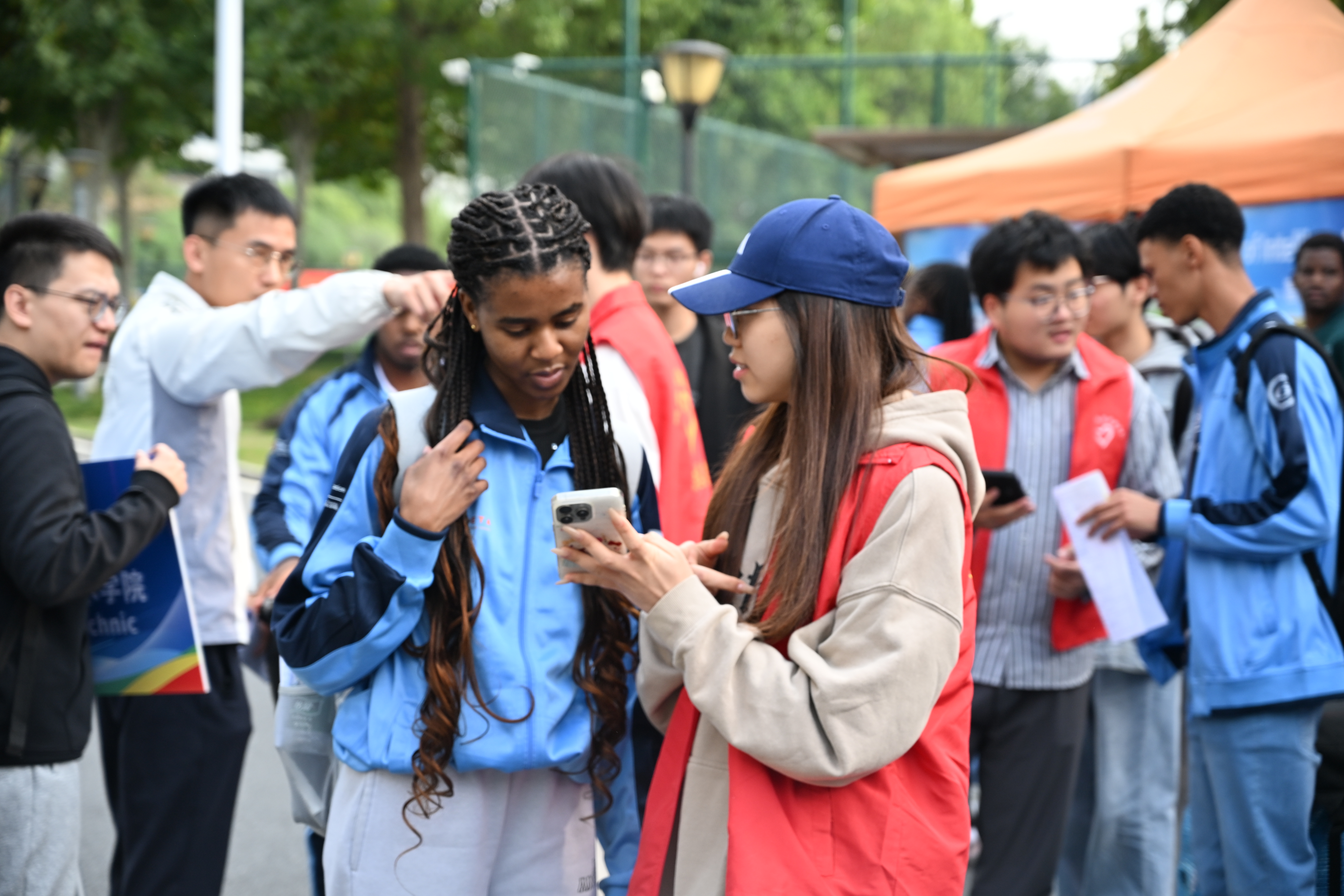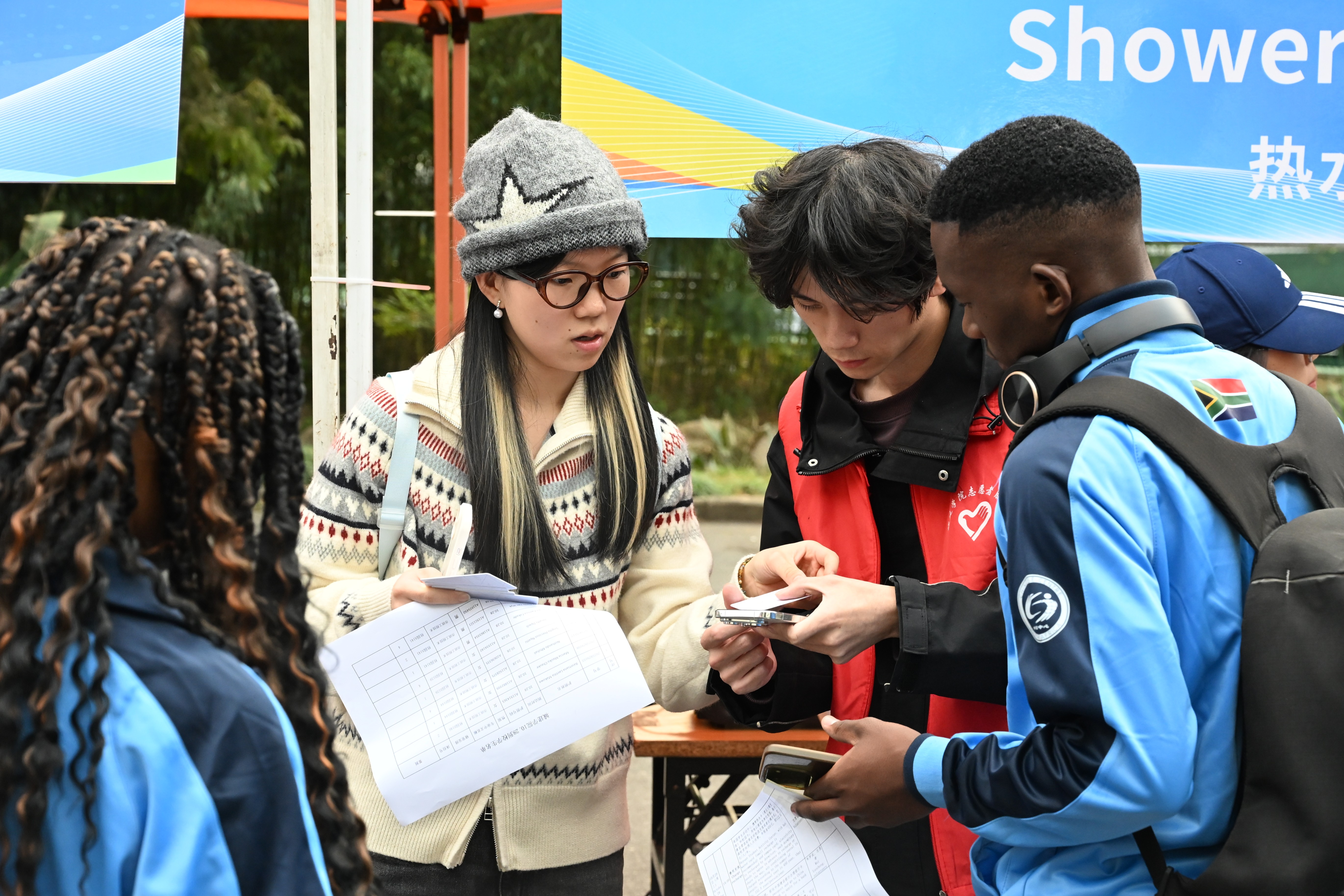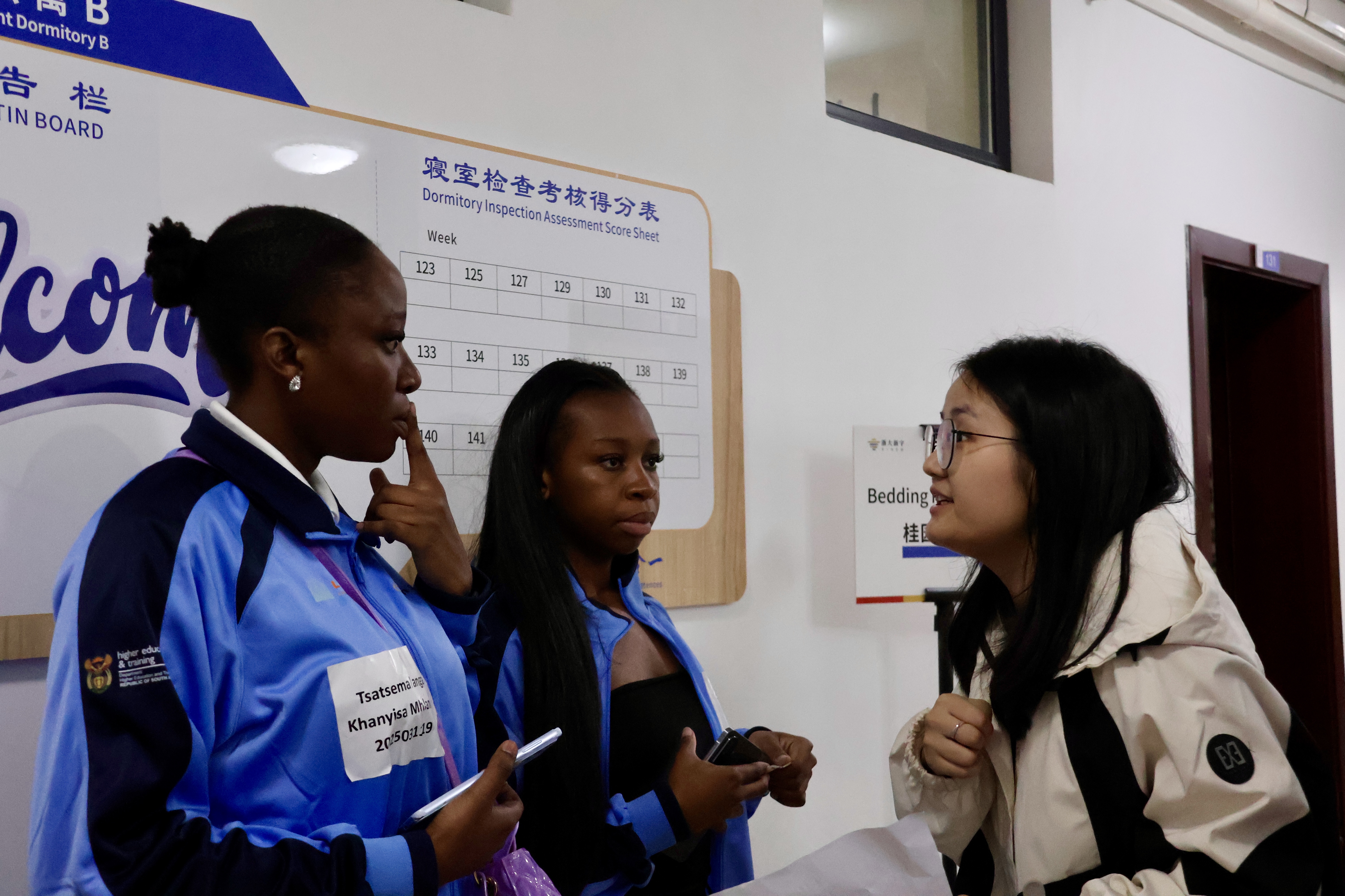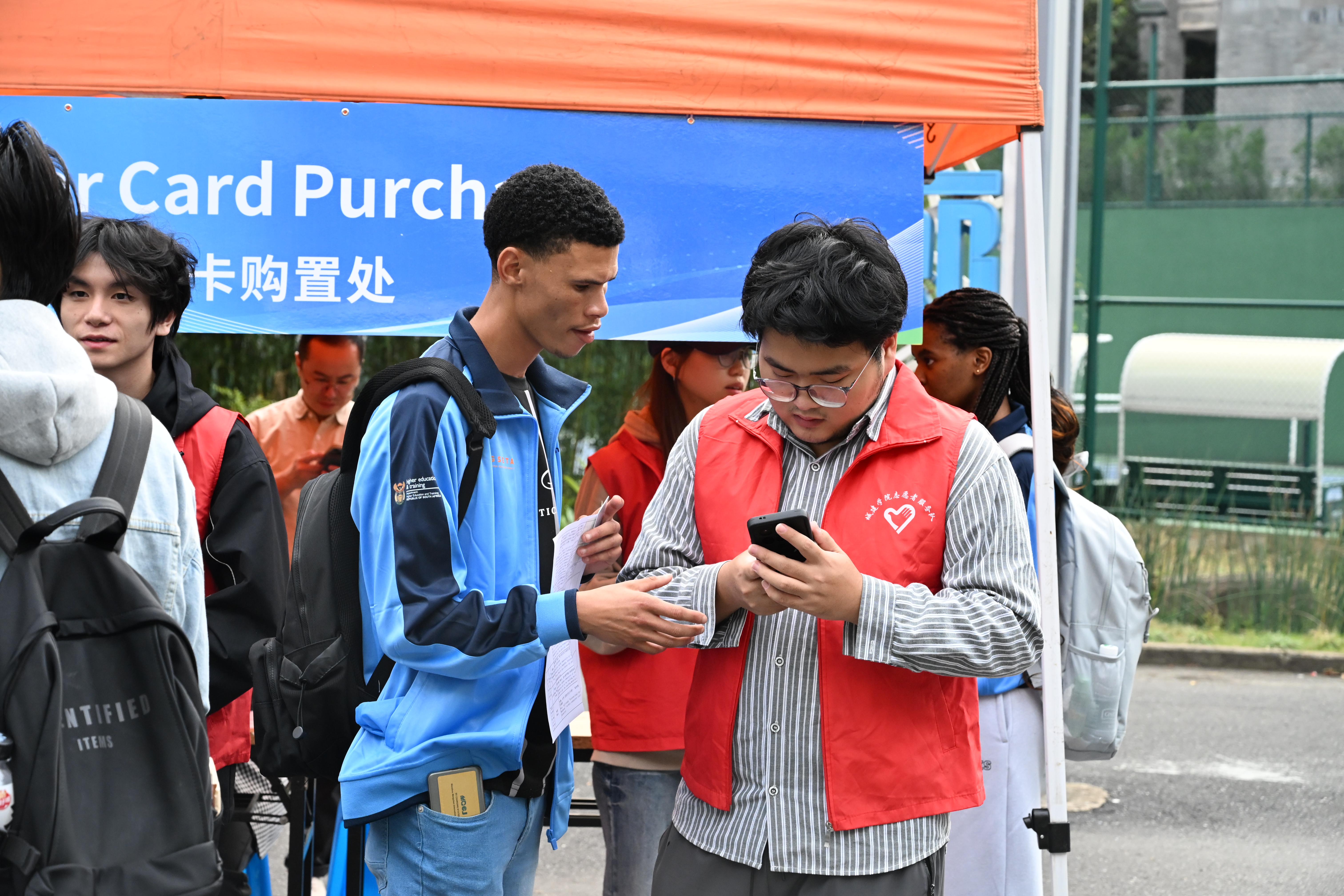 学校高度重视此次南非学历留学生入学报到工作,国际教育处牵头,与各相关职能部门及二级学院协同联动统筹协作,构建了一套高效、便捷、充满人文关怀的迎新工作体系,确保留学生能够顺畅无忧地开启新征程。报到现场,“一站式”服务流程清晰明了,各功能区划分井井有条,醒目的双语指引标识随处可见。穿梭在校园各处的学生志愿者们,用流利的英语和温暖的微笑,为新生提供从引导到答疑的全方位帮助,让初到校园的他们第一时间感受到了“家”的温暖。